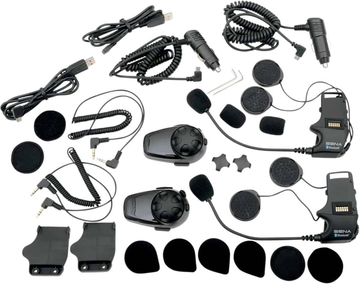 El SMH10D-10 es un auricular estéreo Bluetooth v3.0 + EDR Clase 1 con intercomunicador Bluetooth de largo alcance diseñado específicamente para motocicletas. Con el SMH10D-10, puedes llamar manos libres a tu teléfono móvil Bluetooth, escuchar música estéreo o instrucciones de voz de navegaciones GPS por Bluetooth de forma inalámbrica, y tener conversaciones por intercomunicador en dúplex completo con un pasajero u otros motociclistas. Este paquete contiene dos juegos completos de auriculares SMH10 y accesorios de montaje. Las características incluyen Bluetooth 3.0, conexión multipunto y conferencias para hasta 4 personas. Gracias a la tecnología de procesamiento digital avanzada y al Bluetooth v3.0 más reciente, el SMH10D-10 ofrece la mejor calidad de sonido tanto para el sonido entrante como para el saliente en su clase. Además, las operaciones de botones fáciles de acceder e intuitivas hacen del SMH10D-10 un compañero perfecto para motocicletas. El SMH10D-10 se puede conectar de forma inalámbrica a otros dispositivos Bluetooth que admitan HSP/HFP (Perfil de auriculares/Perfil manos libres) y A2DP (Perfil de distribución de audio avanzado). Disfruta del control de reproducción de música Bluetooth mediante AVRCP: reproducir, pausar, avanzar de pista y retroceder de pista. Otras características Bluetooth incluyen Multi-Pair para permitir la funcionalidad de intercomunicador para 4 personas, y compatibilidad con selectos sistemas GPS para motocicletas. Utilízalo como intercomunicador, o conéctalo a tus dispositivos portátiles. Perfiles de volumen ajustables individualmente. Puedes aumentar/disminuir fácilmente el volumen de la voz, la música y el intercomunicador usando el Dial Jog. El SMH10D-10 puede guardar los niveles de volumen de perfiles conectados previamente. Esto significa que el volumen del teléfono (HSP/HFP), el volumen de la música (A2DP) y los volúmenes de intercomunicador se guardarán por separado y volverán a su propio nivel de volumen guardado cada vez que se reconecte el perfil asociado. El ajuste de volumen del perfil solo se ve afectado durante el uso de su perfil específico. Sin embargo, al cambiar el volumen durante el modo de espera, el cambio de volumen se aplicará a todos los perfiles. Los tonos de alerta como la advertencia de batería baja y los tonos de conexión solo se pueden ajustar en el modo de espera. Fácil instalación para la mayoría de los cascos. El SMH10D-10 se adaptará a varios tipos de cascos. La abrazadera estándar, incluida en el embalaje predeterminado, se ajustará a la mayoría de los cascos. Para instalaciones que puedan requerir longitud de cable adicional, auriculares en lugar de altavoces, y micrófono con cable en lugar de micrófono flexible, Sena ofrece diferentes tipos de abrazaderas como accesorio adicional (se venden por separado), para permitir varias instalaciones y preferencias de usuario. Garantía de dos años. El SMH10D-10 ofrece tranquilidad en tu compra con una garantía de 12 meses contra defectos de mano de obra. Consulta la tarjeta de garantía en el embalaje de tu producto para obtener todos los detalles. Lo que incluye la caja. El paquete del Bundle del auricular Bluetooth Sena SMH10D-10 incluye dos juegos completos de lo siguiente: Unidad de abrazadera de altavoz/micrófono SMH10, cable de carga y datos USB, cable jack de audio estéreo de 3.5mm, adaptador de montaje de superficie pegada, esponjas de micrófono, almohadillas de altavoz, almohadillas de velcro, llave Allen (para instalación), tapa de micrófono, además de un manual y garantía. Especificaciones técnicas. Tiempo de conversación: 12 horas. Tiempo de espera: 10 días. Distancia de trabajo (intercomunicador): Hasta 900 metros (980 yardas) en terreno abierto. Bluetooth: v3.0 + EDR. Audio: Códec SBC integrado, frecuencia de muestreo 48 kHz (DAC). Tiempo de carga de la batería: 2.5 horas. Tipo de batería: Batería de polímero de litio. Dimensiones del auricular: 84.1 mm x 56.5 mm x 38.6 mm. Peso del auricular: 60 g. Dimensiones de la abrazadera: 223.8 mm x 85.5 mm x 30.6mm. Peso de la abrazadera: 84 g. Descripción del producto. El auricular y intercomunicador Bluetooth 3.0 SMH10 de Sena fue diseñado para mantenerte conectado con tus compañeros de viaje sobre rangos más largos para conversaciones y compartición de música, hasta 900 metros. Cuando se empareja con un teléfono con Bluetooth, también te permitirá realizar llamadas manos libres. El SMH10 cuenta con un kit de abrazadera de casco y micrófono flexible. El Dial Jog es una interfaz de usuario intuitiva que es mucho más fácil de controlar mientras conduces. El Dial Jog por defecto es control de volumen, y al presionar el botón integrado puedes navegar por todas las funciones del dispositivo con la menor molestia, lo que significa que conducirás con más seguridad. El SMH10 ofrece un sonido claro y natural a través del auricular estéreo Bluetooth que recibe un impulso automático en entornos ruidosos, mientras que la tecnología Advanced Noise Control reduce el ruido de fondo tanto para el audio entrante como saliente. Las funciones de control de reproducción de música Bluetooth incluyen funciones de reproducción, pausa, avance de pista y retroceso de pista, además cada fuente de audio tiene su propio nivel de volumen ajustable. Los anuncios de voz integrados (disponibles en inglés, francés, alemán, italiano y español) te ayudarán a aprender rápidamente cómo funcionar el dispositivo. Obtendrás hasta 12 horas de tiempo de conversación y 10 días de tiempo en espera con una sola carga. Y aunque tus compañeros no te tengan