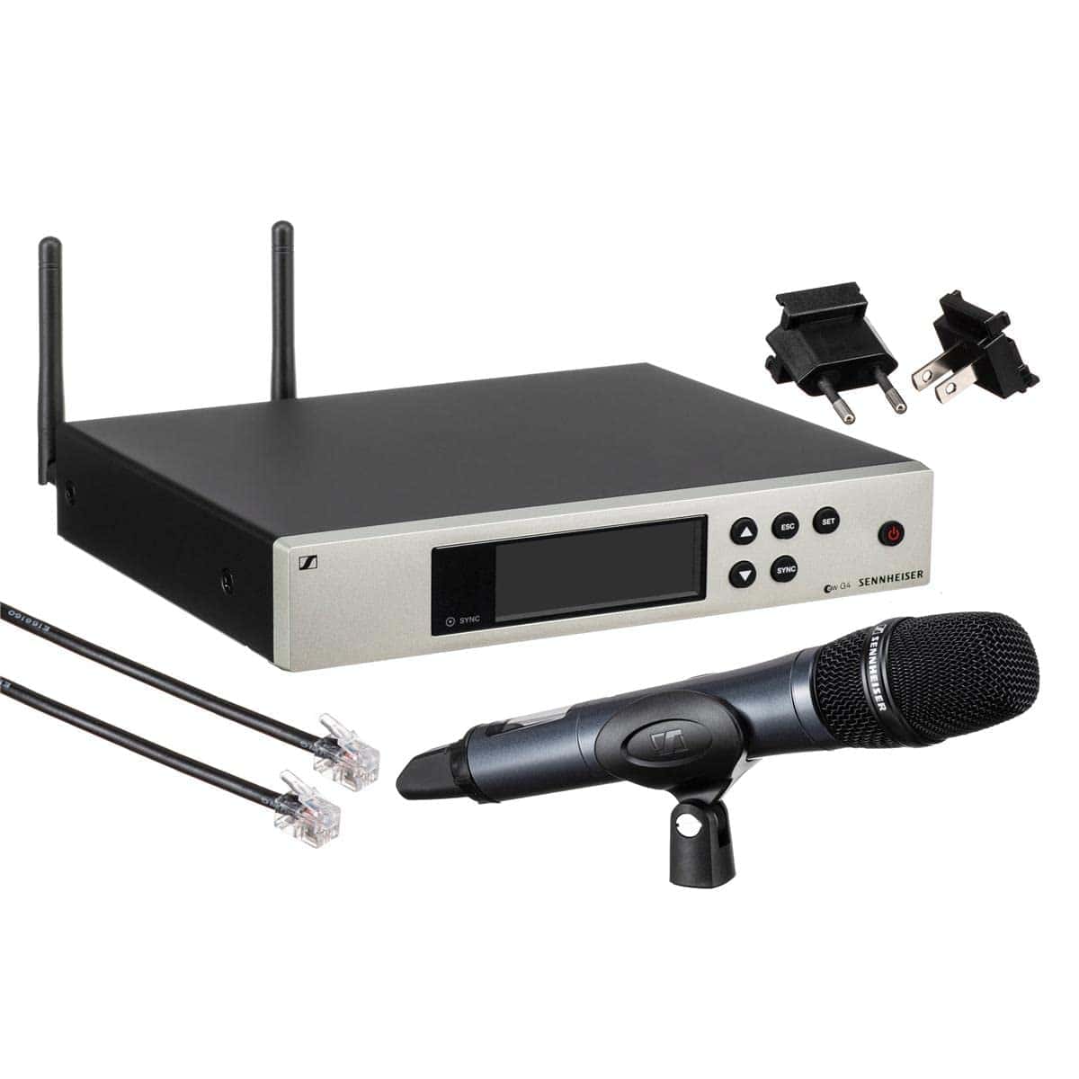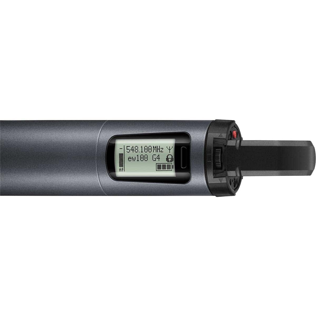 Set vocal inalámbrico. Incluye (1) micrófono de mano SKM 100 G4-S con interruptor de silencio, (1) cápsula de micrófono e 935 (cardioide, dinámico), (1) receptor de montaje en rack EM 100 G4, (1) kit de rack GA3, (1) cable de conexión RJ10 y (1) clip para micrófono, rango de frecuencia: A1 (470 – 516 MHz)