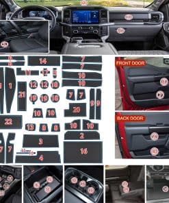 El juego de 40 piezas de revestimientos antideslizantes antipolvo SENSHINE para Ford F150 es el complemento perfecto para su vehículo. Con un diseño a medida para los modelos más recientes de Ford F150 Super Crew 2021, 2022, 2023, 2024, 2025 con 40/Consola/40, estos revestimientos proporcionan una protección completa para los compartimientos del interior de su automóvil, incluidos los portavasos, los bolsillos de las puertas y la consola central. Hechos de goma duradera y altamente flexible, los revestimientos ofrecen una superficie antideslizante para colocar sus pertenencias y evitan que los objetos hagan ruido en los bolsillos del automóvil. Además de su funcionalidad, estos revestimientos también mejoran la estética de su F150 con un fuerte efecto estereoscópico. El juego incluye una garantía sin problemas de por vida, lo que garantiza su satisfacción a lo largo de la vida útil de su vehículo. Proteja su F150 y agregue un toque de estilo con los revestimientos de posavasos SENSHINE. ¡Ordene el suyo hoy mismo!