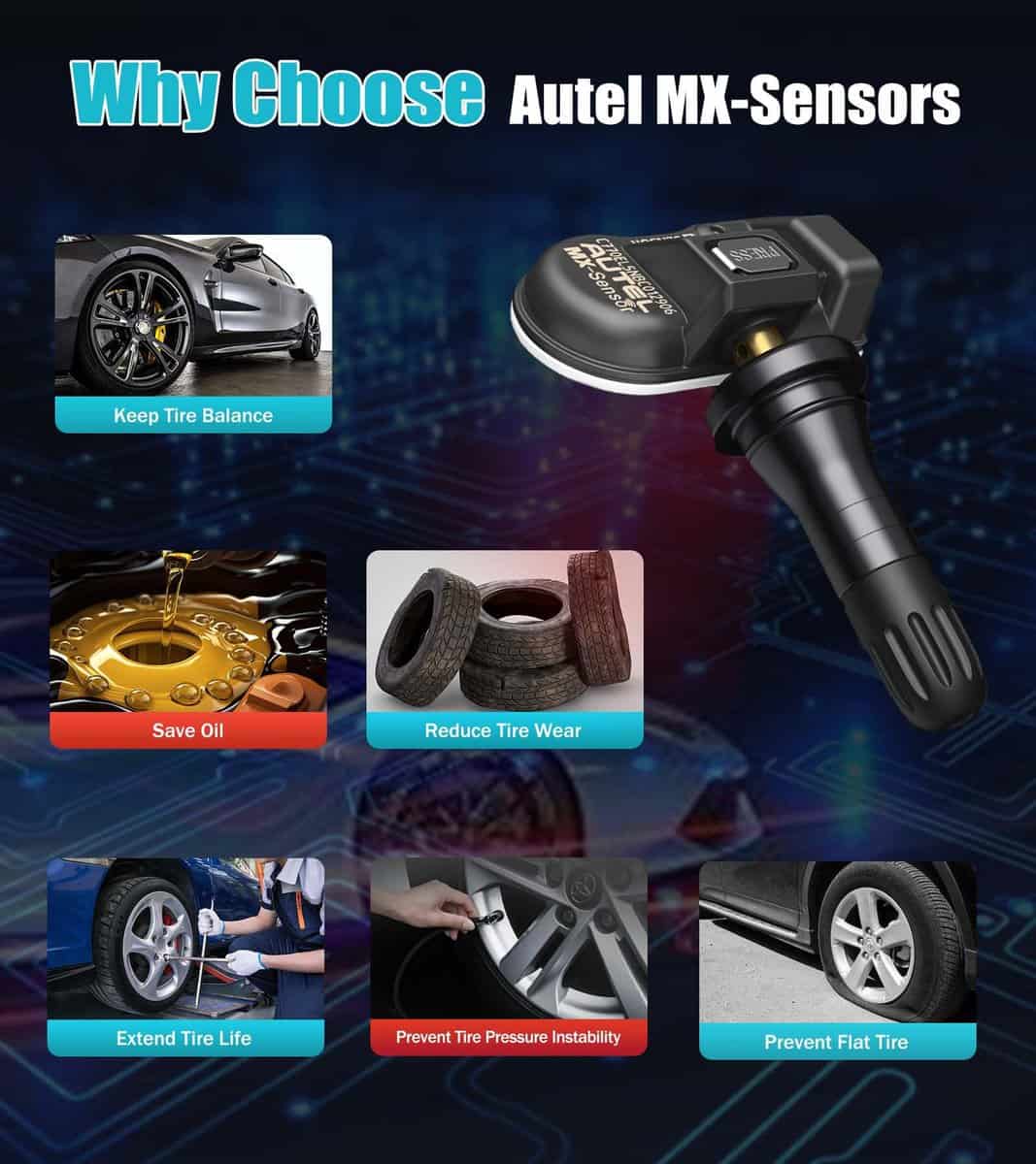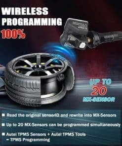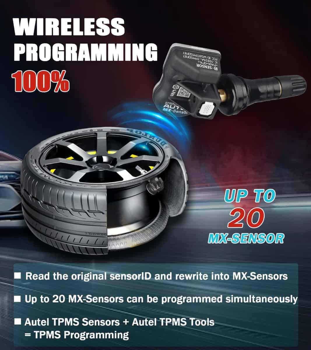 3. SENSORES MX AUTEL PROGRAMABLES El sensor de reemplazo de TPMS de Autel, Sensor MX, está diseñado para las herramientas de programación de TPMS de Autel y es programable con productos TPMS TS408, TS508, TS601, TS608, ITS600 y herramientas de diagnóstico como MK808TS, MP808TS, MS906TS, MS906 Pro-TS, MK906 Pro-TS. Se pueden programar hasta 20 sensores MX simultáneamente. Nota: los sensores MX solo se pueden programar con un escáner Autel.
