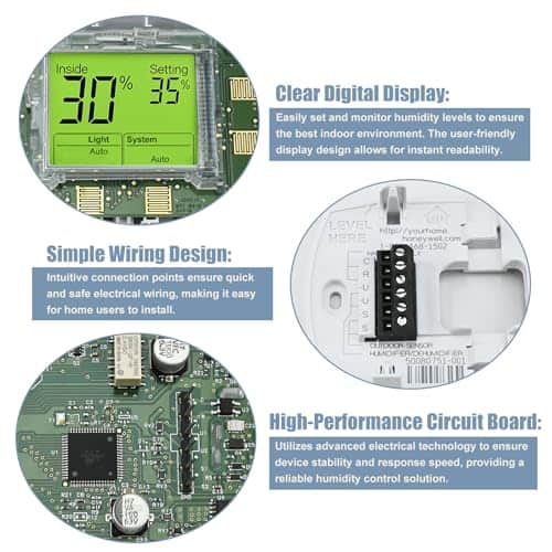 1. Sensor de Control de Humedad Preciso: El sensor de humidistato digital H6062A1000 es compatible con dispositivos Honeywell y cuenta con tecnología avanzada de detección para monitorear y regular con precisión los niveles de humedad en interiores. Esto garantiza un confort óptimo manteniendo las condiciones ideales de humedad.