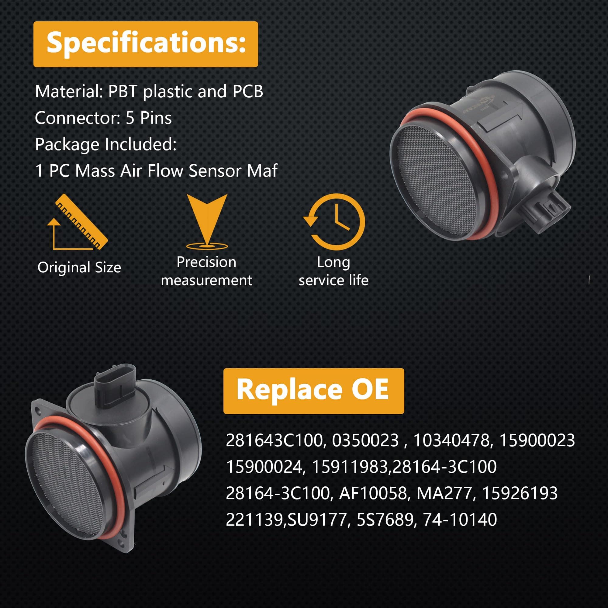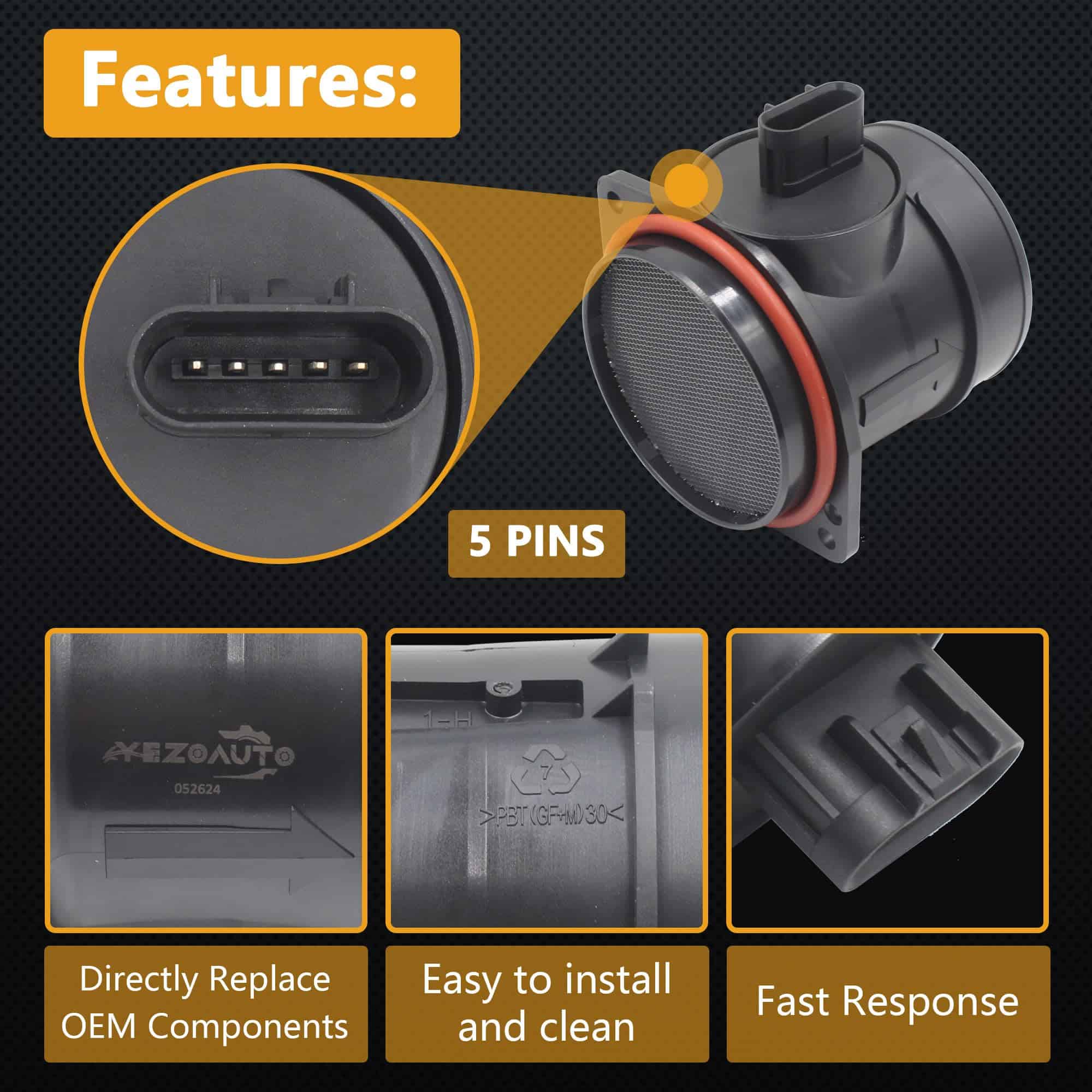 El sensor de flujo de aire masa calcula el oxígeno que fluye hacia su motor para lograr la relación ideal aire-combustible y así aumentar la eficiencia del motor. La señal de flujo de aire electrónica es clave para calcular la cantidad de combustible que debe inyectarse. Esta medición ayuda a mantener la relación aire-combustible en el nivel óptimo y el consumo de combustible en un nivel bajo. Además, ofrecemos servicio postventa de un año para garantizar una solución satisfactoria en caso de problemas durante el uso del producto.