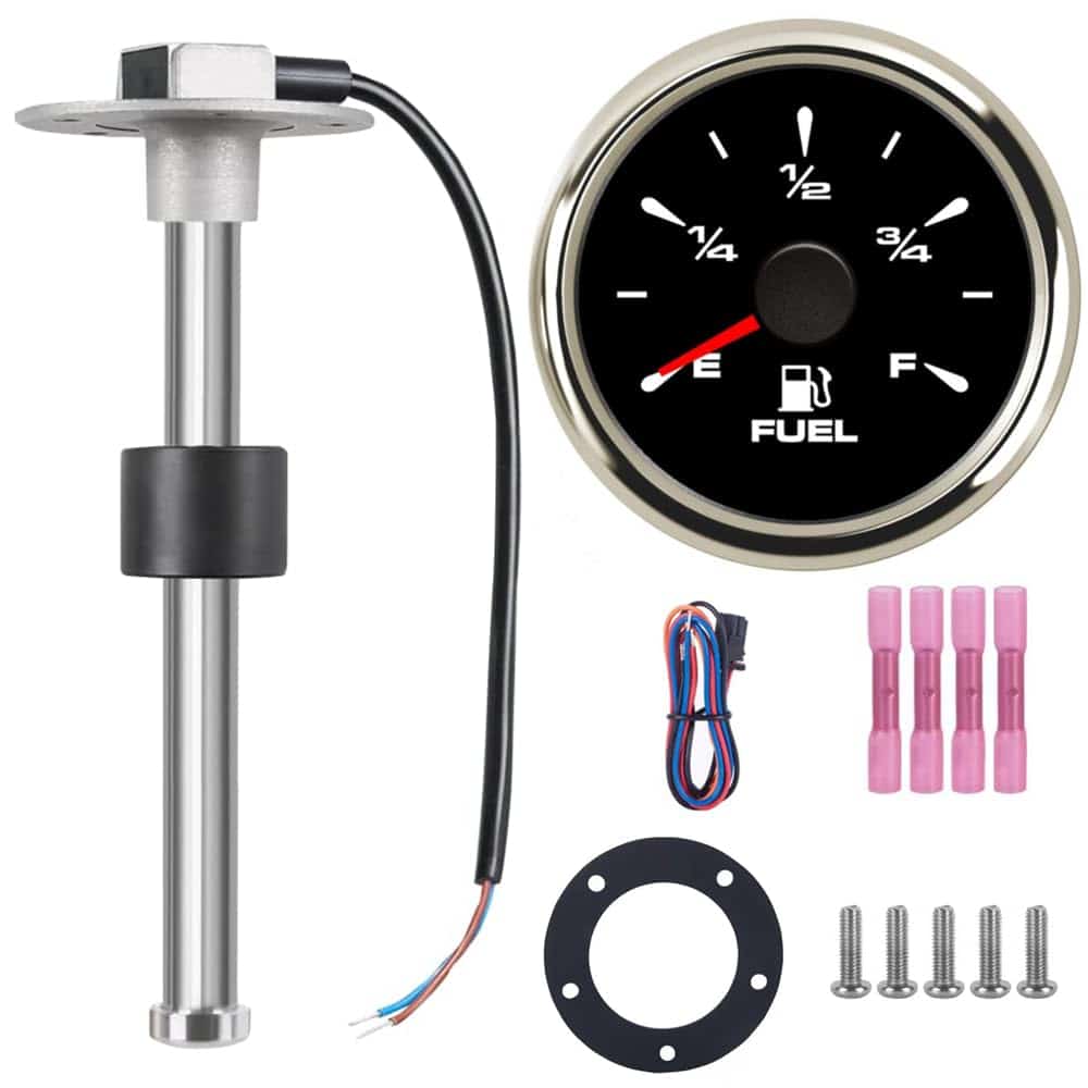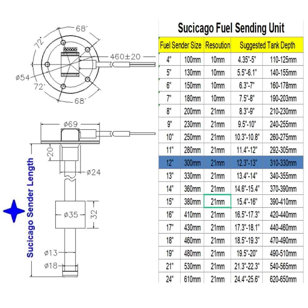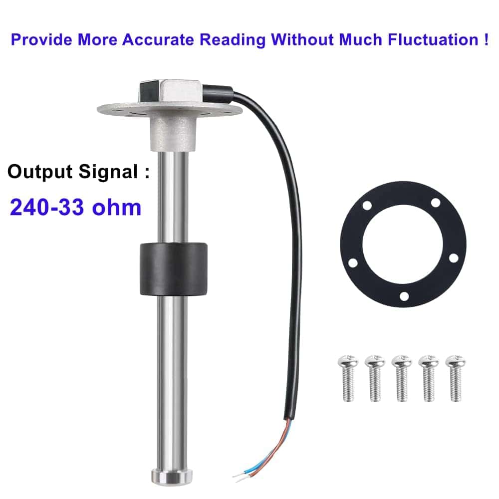 El kit de sensor de combustible y medidor de combustible Sucicago está diseñado para monitorear el nivel de combustible/gasolina/diésel en el tanque. Hay muchas versiones de sensor de nivel de combustible y medidor de combustible en nuestra tienda. Parecen iguales en la imagen, pero las apariencias pueden ser engañosas. Por qué elegir el kit de sensor y medidor de combustible Sucicago: La resolución de la Unidad de Envío de Nivel de Combustible de 5, 6, 7 es de 10 mm. Proporciona una medición más precisa y estable. El cable del medidor de combustible Sucicago es de 0,5 cuadrado. El medidor de combustible Sucicago está alimentado por tecnología de motor paso a paso. Bisel de acero inoxidable 316. Otros: 1. La resolución de la unidad de envío de 4, 5, 5.5, 6, 7, 7.5 es de 21 mm. Debido a la falta de resolución, los cambios de resistencia no son consistentes a medida que la boya sube. Este sensor hará el trabajo, pero proporcionará información menos precisa a su medidor. Los cables del medidor de combustible son ridículamente pequeños. No cumple con el estándar de grosor de cable de los vehículos americanos. Bisel de cromo de acero, fácil de oxidarse. Temperatura de operación: -40 F ~ +85 F (-40 C ~ +85 C). Información adicional: Paquete incluido: 1 x Sensor de Combustible Sucicago, 1 x Medidor de Combustible Sucicago, 1 x Junta NBR, 5 x Tornillos M5 0.8 de Longitud (16 mm), 4 x Terminales de cableado rápido, 1 x Guía de instalación del kit de sensor y medidor de combustible. Muy importante saber ANTES de realizar el pedido: 1) Para evitar que el sensor toque el fondo del tanque, la longitud del sensor debe ser 1″ menor que la profundidad del tanque si el tanque es de plástico, y 0,5″ menor que la profundidad del tanque si el tanque es de metal. 2) El diámetro de la boya es de 1,38″ (35 mm). Si tienes que taladrar el agujero, un agujero de 1,50″ (38 mm) sería perfecto. Los sensores de combustible Sucicago no son lineales. Nota: Se sugiere que el cliente realice una prueba en banco del kit de sensor y medidor de combustible Sucicago antes de la instalación para asegurarse de que ambos funcionen correctamente.