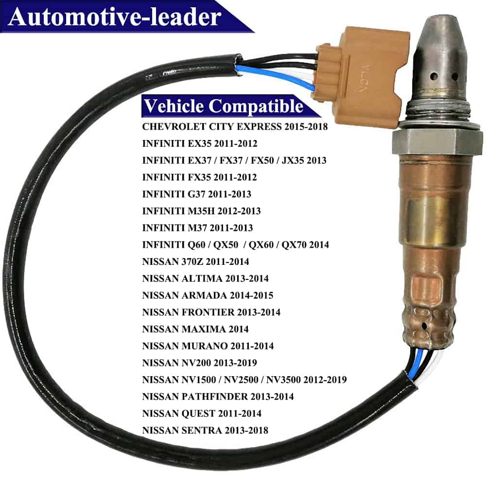 Contenido del paquete: Pack de 1 sensor de oxígeno 234-9135/22693-1JA0A de relación aire/combustible O2 Lambda. Ajuste: 2011-2012 Infiniti EX35 3.5L-V6 upstream, 2013 Infiniti EX37 3.7L-V6 upstream, 2011-2012 Infiniti FX35 3.5L-V6 upstream, 2013 Infiniti FX37 3.7L-V6 upstream, 2013 Infiniti FX50 5.0L-V8, 2011-2013 Infiniti G37 3.7L-V6 upstream, 2013 Infiniti JX35 3.5L-V6 upstream, 2012-2013 Infiniti M35h 3.5L-V6 upstream, 2011-2013 Infiniti M37 3.7L-V6 upstream, 2014 Infiniti Q60 3.7L-V6 upstream, 2014 Infiniti QX50 3.7L-V6 upstream, 2014 Infiniti QX60 3.5L-V6 upstream, 2014 Infiniti QX70 3.7L-V6 upstream, 2014 Infiniti QX70 5.0L-V8 upstream, 2011-2014 Nissan 370Z 3.7L-V6 upstream, 2013-2014 Nissan Altima 3.5L-V6 4 puertas upstream, 2014-2015 Nissan Armada 5.6L-V8 upstream, 2013-2014 Nissan Frontier 4.0L-V6 upstream, 2014 Nissan Maxima 3.5L-V6 upstream delantero, 2011-2014 Nissan Murano 3.5L-V6 AWD upstream izquierdo, 2011-2014 Nissan Murano 3.5L-V6 FWD upstream izquierdo, 2012-2014 Nissan NV1500 4.0L-V6 upstream derecho, 2013-2015 Nissan NV200 L4-2.0L upstream, 2012-2014 Nissan NV2500 4.0L-V6 upstream, 2012-2014 Nissan NV3500 4.0L-V6 upstream izquierdo, 2012-2013 Nissan NV3500 4.0L-V6 upstream derecho, 2013-2014 Nissan Pathfinder 3.5L-V6 upstream, 2011-2013 Nissan Quest 3.5L-V6 upstream izquierdo, 2014 Nissan Quest 3.5L-V6 upstream, 2013-2015 Nissan Sentra 1.8L-L4 Exc Calif. Upstream, 2013-2015 Nissan Titan 5.6L-V8 upstream, 2013-20145 Nissan Xterra 4.0L-V6 upstream.