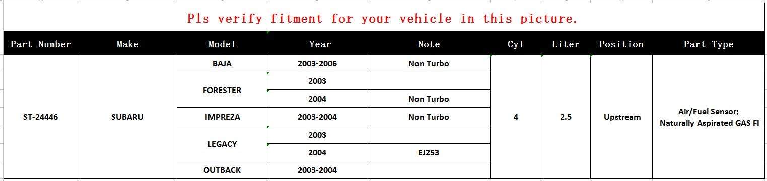 – Sensor de Oxígeno Upstream para Subaru Baja 2003-2006 (excluyendo modelos Turbo)