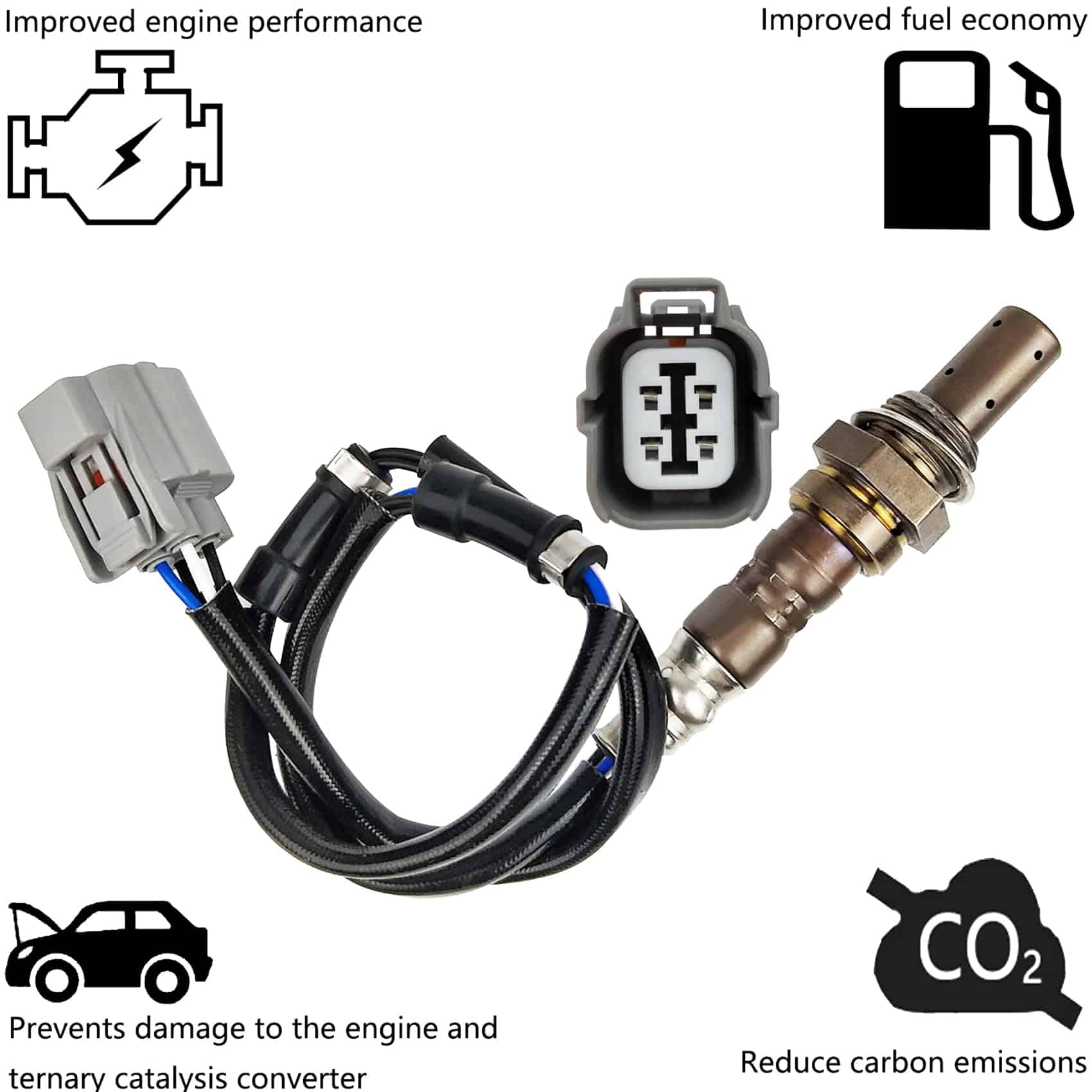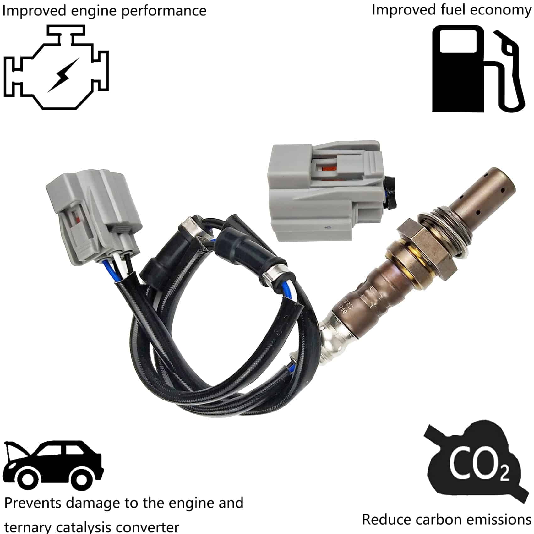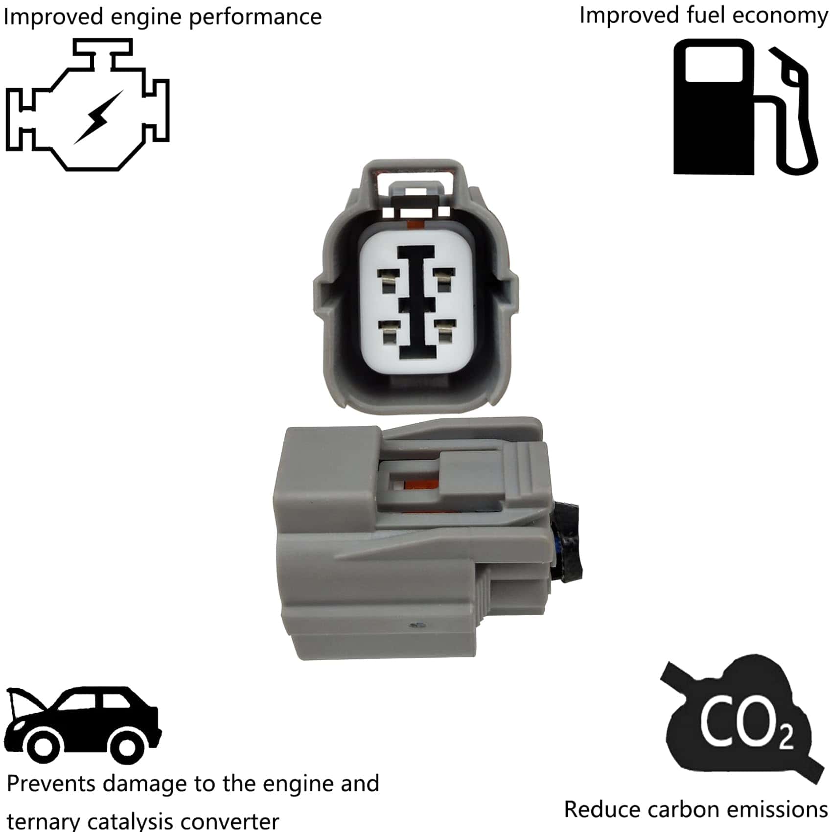 Enfatizando durabilidad, nuestro sensor de oxígeno está meticulosamente fabricado con materiales resistentes a altas temperaturas, garantizando tiempos de respuesta rápidos. El cuerpo de acero inoxidable soldado con láser doble es completamente sumergible, formando un sello hermético para una longevidad extendida. Por favor, verifique la información de su vehículo con ‘Compatibilidad Garage’ (marca, modelo y nivel de acabado) y el número OEM antes de comprar. Se ajustará a su vehículo cuando el conector y la longitud sean iguales que los de su sensor de oxígeno original. La instalación es sencilla, ya que los sensores de oxígeno se reemplazan sin necesidad de modificaciones en sus posiciones de instalación originales. La instalación en su vehículo se simplifica gracias a los hilos pre-recubiertos que facilitan un proceso de instalación eficiente y suave. Sensor de banco 1 sensor 1 aguas arriba derecho / trasero; Sensor de banco 2 sensor 1 aguas arriba izquierdo / delantero; Sensor de banco 1 sensor 2 aguas abajo derecho / trasero; Sensor de banco 2 sensor 2 aguas abajo izquierdo / delantero; sensor 1 aguas arriba, sensor 2 aguas abajo.