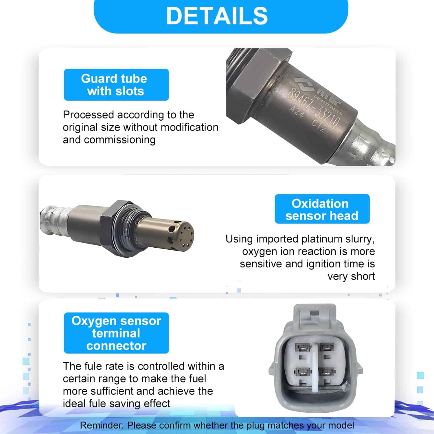 Antes de comprar este sensor de oxígeno, verifique el año/modelo y el número de parte intercambiable para confirmar la compatibilidad. Números de referencia a reemplazar: 234-9304, 89467-33210, 2349304, 8946733210. Compatible con Toyota Camry 2018-2020, Camry 2019-2021 y Lexus ES300h 2019-2020. El sensor de oxígeno monitorea el gas mezclado para permitir al motor estar en la mejor condición de combustión del gas mezclado; controla la emisión de escape del automóvil, reduce la contaminación al medio ambiente y mejora la combustión de combustible del motor del automóvil. Con el tiempo, el sensor de oxígeno también envejecerá y necesitará ser reemplazado. Se recomienda reemplazar el sensor de oxígeno cada 100.000 km para una mejor eficiencia de uso. Además, si el sensor de oxígeno está dañado, debe ser reemplazado a tiempo.