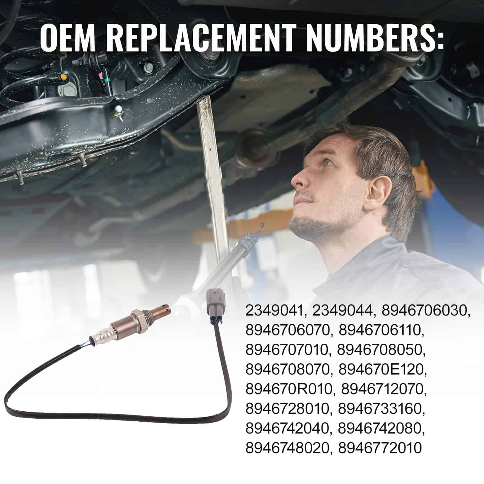 2. Número de pieza OEM: 2349041, 2349044, 8946706030, 8946706070, 8946706110, 8946707010, 8946708050, 8946708070, 894670E120, 894670R010, 8946712070, 8946728010, 8946733160, 8946742040, 8946742080, 8946748020, 8946772010.