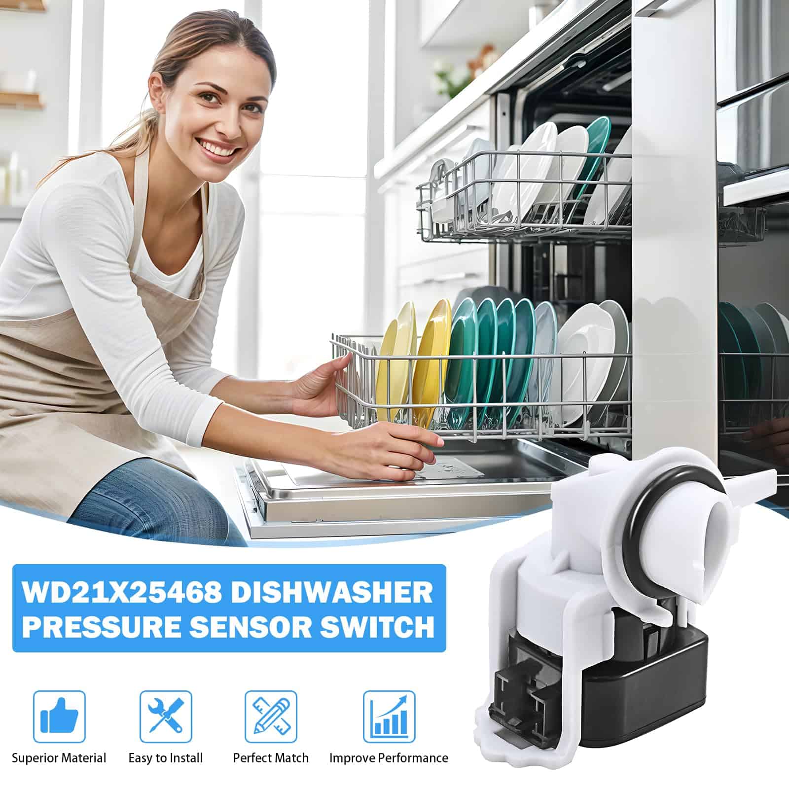 Sensor de presión de lavavajillas WD21X25468 Compatible con