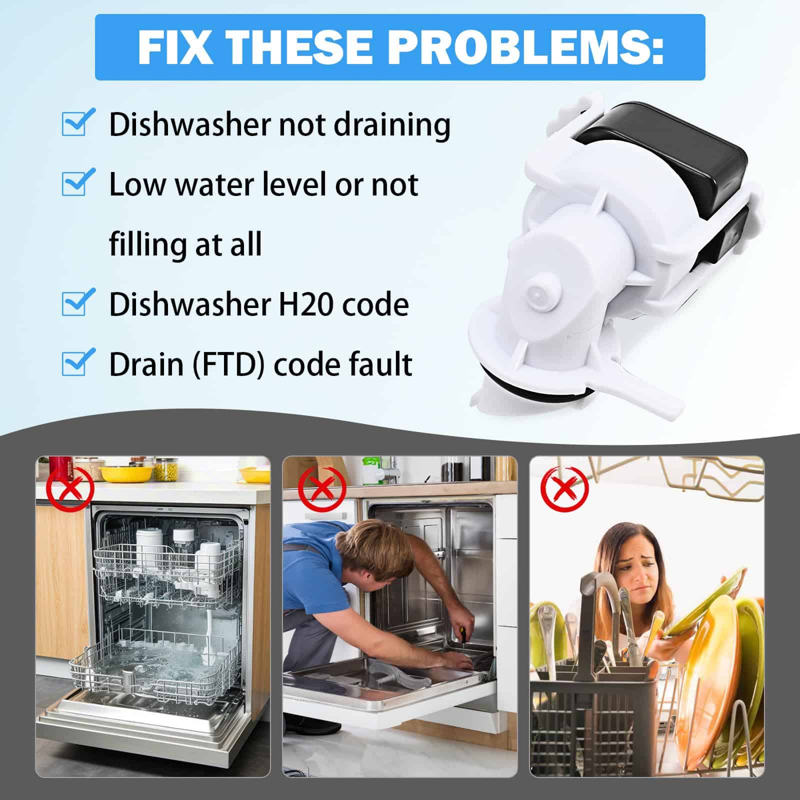 – Actualiza el sensor de presión de lavavajillas – El sensor de presión de lavavajillas WD21X25468 está diseñado para monitorear la presión del agua y transmitir esta información a la placa de control principal. Con el sensor de presión de lavavajillas de TOVEN-RV, puedes deshacerte de problemas molestos como «No seca o calienta; Flujo de agua anormal; No drena; Mal olor; Lavavajillas se apaga prematuramente o tiene problemas de sobrellenado».