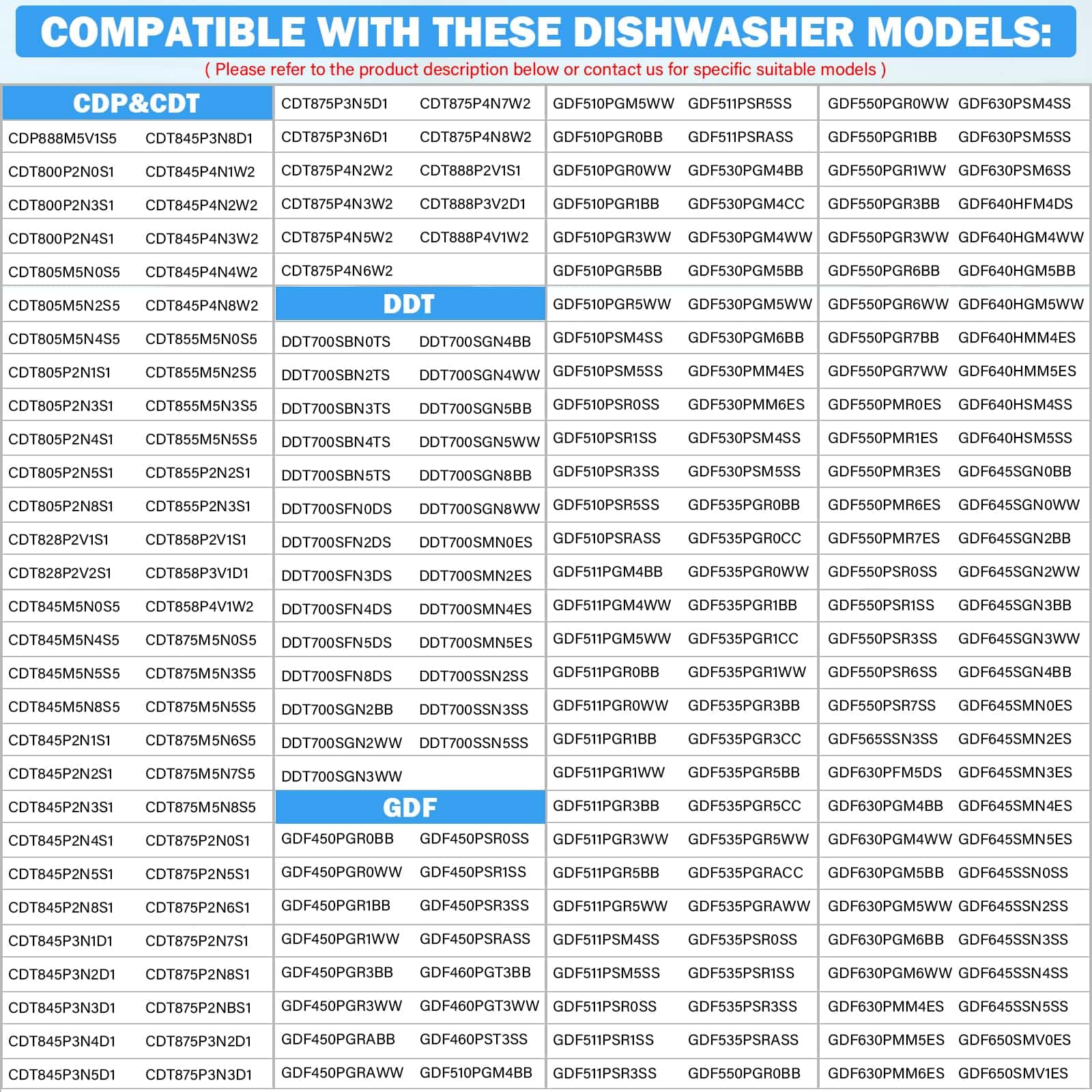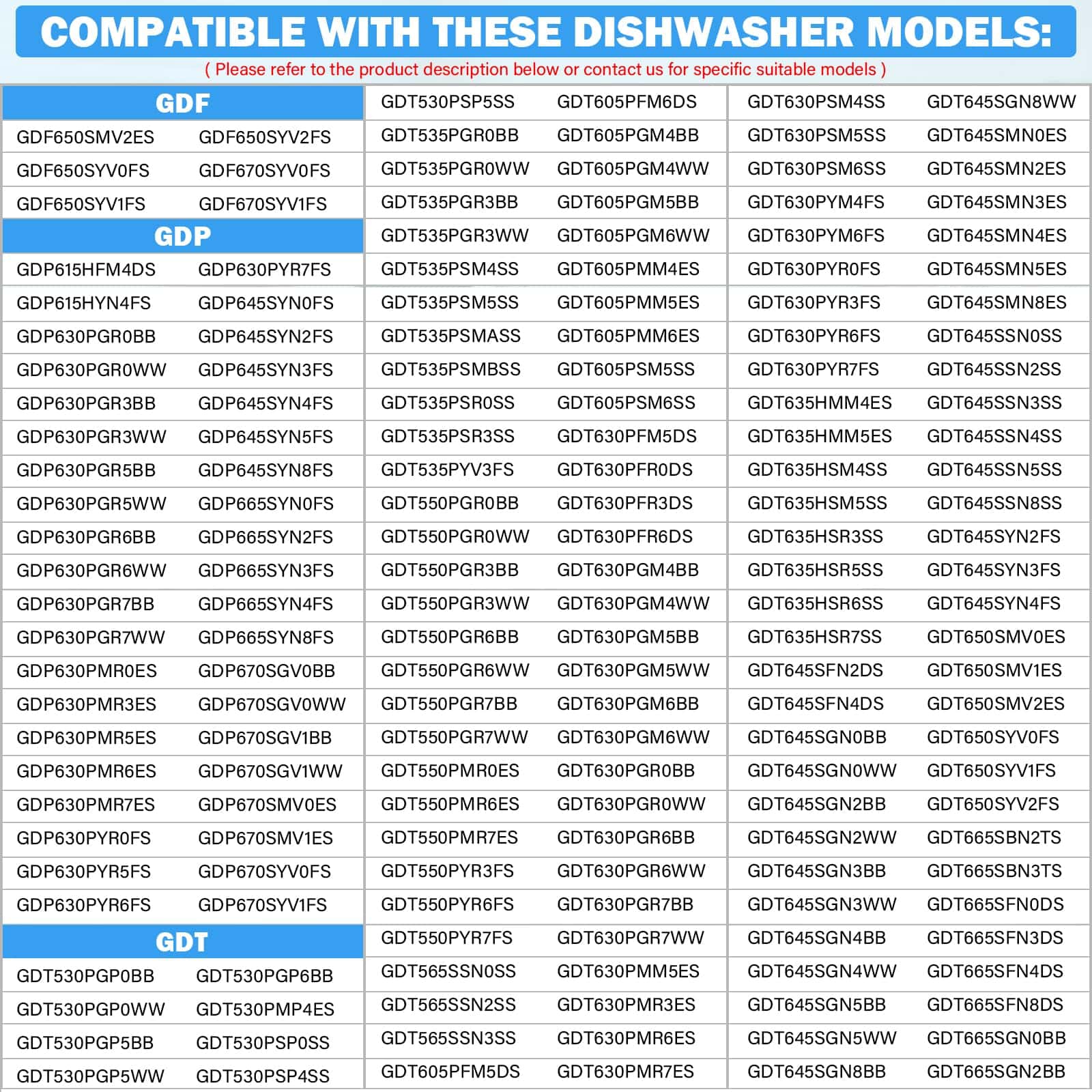 – Compatible con los siguientes modelos de lavavajillas – Compatible con la mayoría de los modelos de lavavajillas como GDF645SMN3ES, GDF645SSN0SS, GDF645SSN0SS, GDF645SSN2SS, GDF645SSN3SS, GDP615HFM4DS, GDP615HSM4SS , GDP615HYN4FS, GDP645SYN0FS, GDP645SYN2FS, GDP645SYN3FS, GDP665SYN0FS, GDP665SYN2FS, GDP665SYN3FS, GDT530PGP0BB, GDT530PGP0WW, GDT530PGP4BB, GDT530PGP4WW, GDT530PGP5BB, etc. Para otros modelos aplicables, consulta la descripción del producto. ¡Gracias!