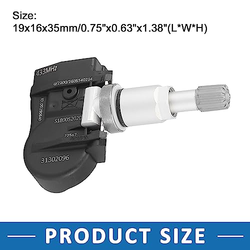 Sensor de presión de neumáticos de repuesto 31302096 TPMS Sensor para Volvo XC60 2010-2017. Este sensor de presión de neumáticos es un reemplazo directo para el número OE 31302096 y es adecuado para modelos de Volvo XC60 fabricados entre 2010 y 2017. El sensor permite monitorear de manera precisa la presión de aire dentro de los neumáticos del vehículo y enviar retroalimentación al display del vehículo. Fabricado con material ABS de alta calidad, este Sensor de Presión de Neumáticos es resistente al desgaste, duradero y resistente a los arañazos. La instalación es sencilla siguiendo los pasos recomendados y la lista de paquetes incluye 4 pcs de Sensores de Presión de Neumáticos para reemplazarlos en los 4 neumáticos del vehículo.