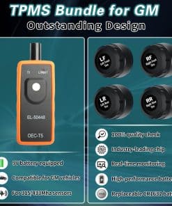 4. Paquete de TPMS para GM: El TPMS de Masoll viene con la herramienta de aprendizaje para TPMS EL-50448 y un juego de 4 sensores de presión de neumáticos avanzados con tapa, proporciona todo lo que necesita para apagar la luz de TPMS usted mismo. Excelente solución para vehículos GM con problemas de presión de neumáticos.