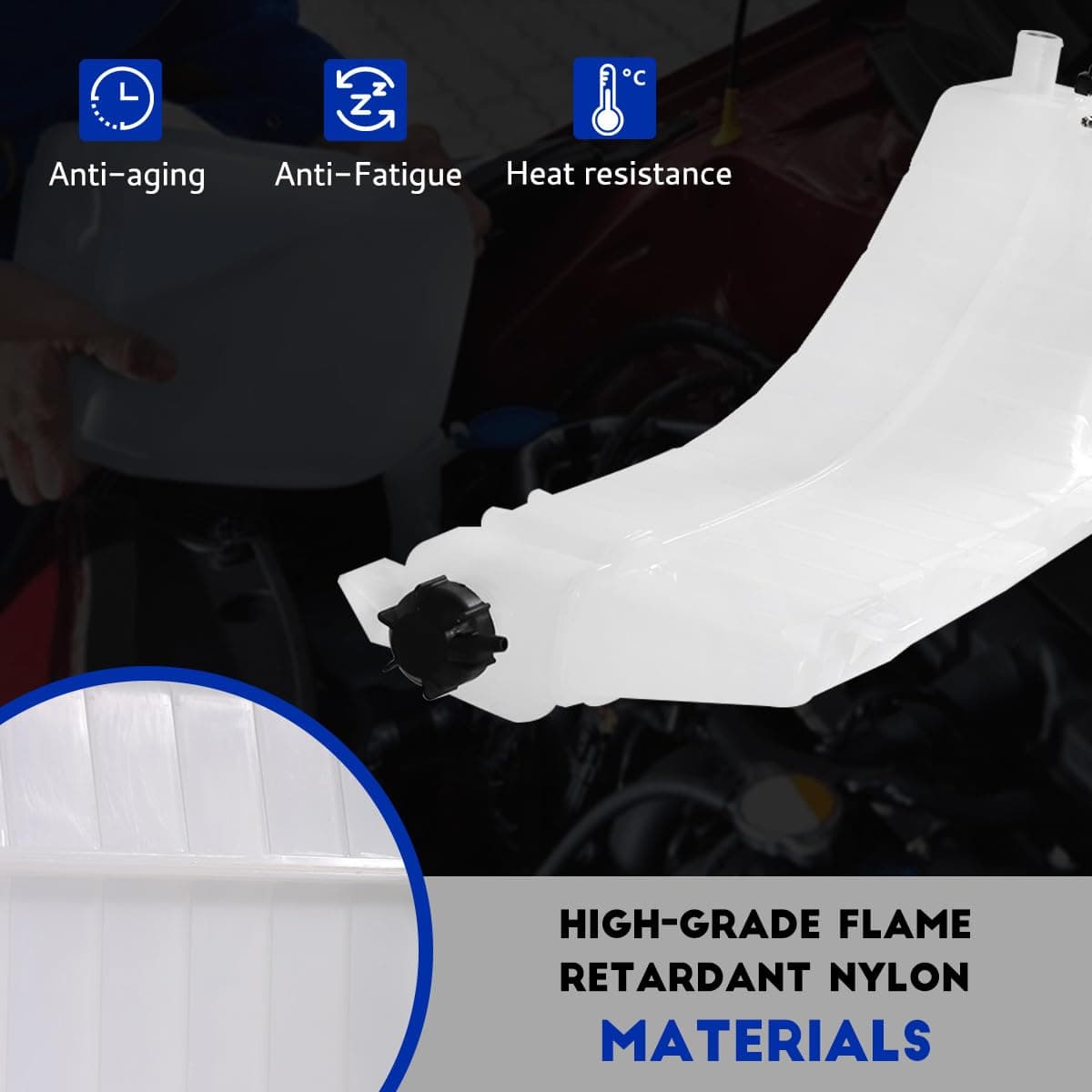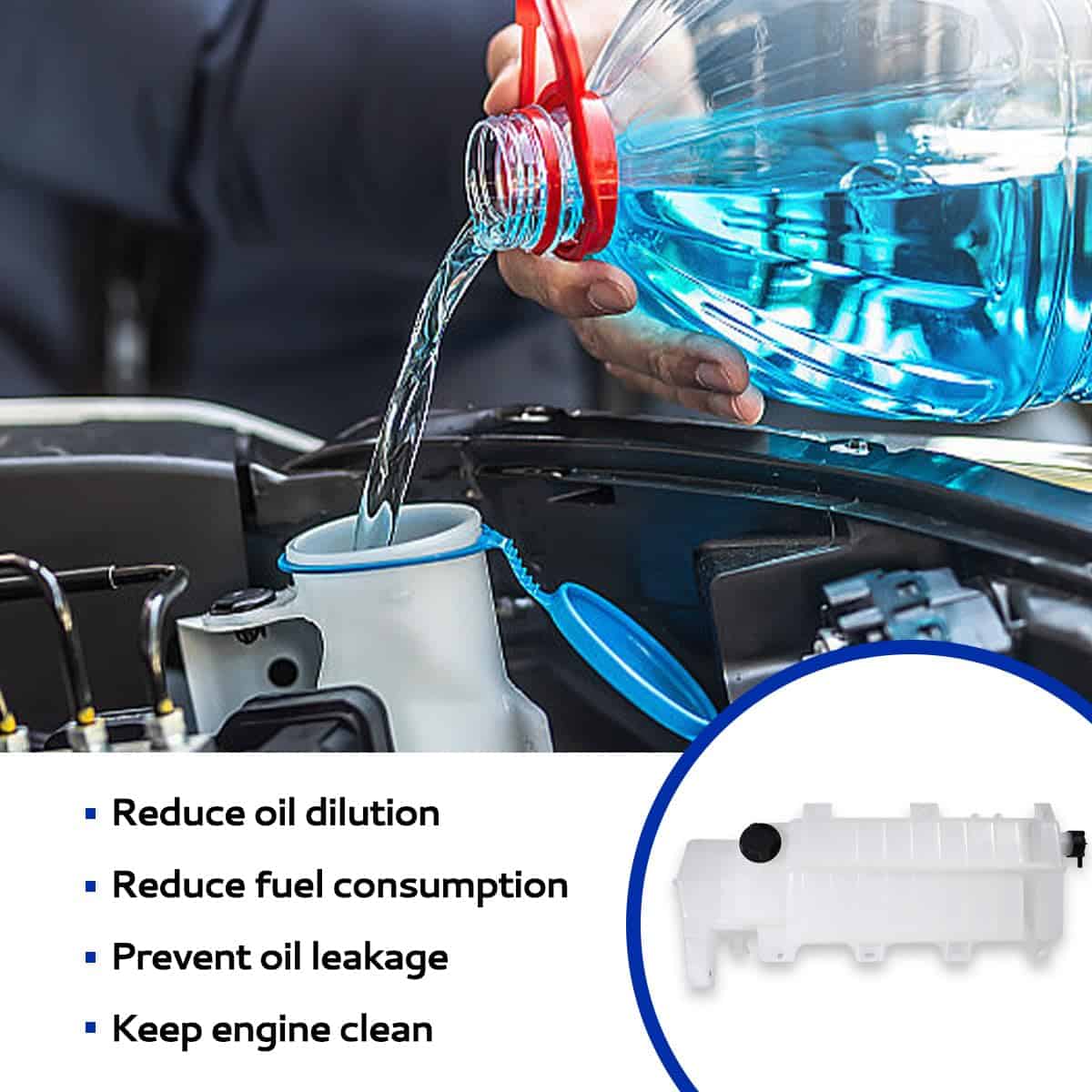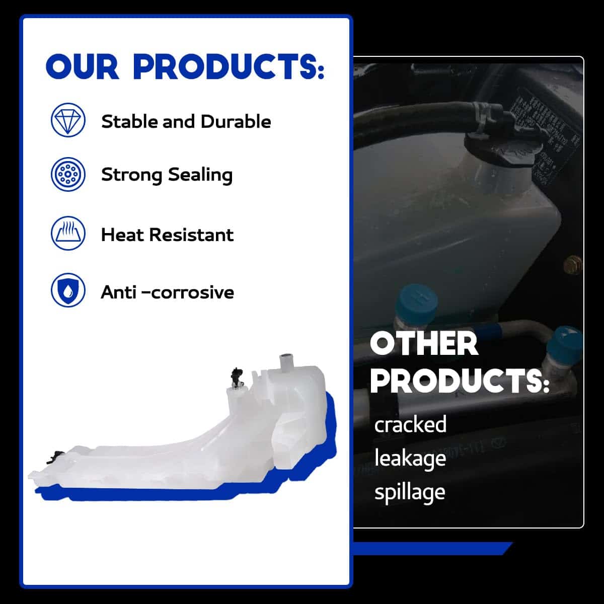 Con un buen sellado, anti-corrosión y durabilidad, el depósito de refrigerante también desempeña un papel importante en la reducción de la dilución del aceite y en mantener limpio el motor. Además, ayuda a reducir el consumo de combustible al tiempo que soporta las fluctuaciones extremas de temperatura y presión generadas por el motor.