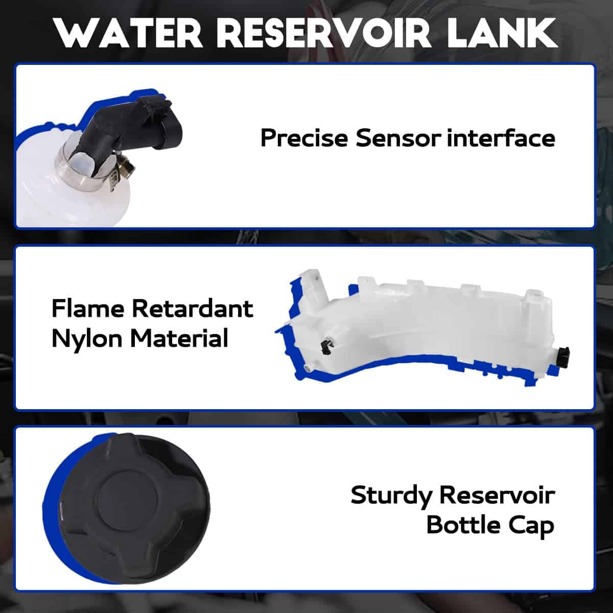 Este depósito de refrigerante es fácil de instalar, sin necesidad de perforaciones o cortes, garantizando una instalación sin complicaciones. Fabricado con materiales de aluminio de alta calidad y tecnología avanzada, este depósito es resistente a la expansión y agrietamiento causados por las variaciones extremas de temperatura, lo que lo hace durable y anti-corrosivo. Además, su salida de agua con tubo de acero integrado proporciona una doble protección eficaz contra altas temperaturas, aumentando la eficiencia del producto.