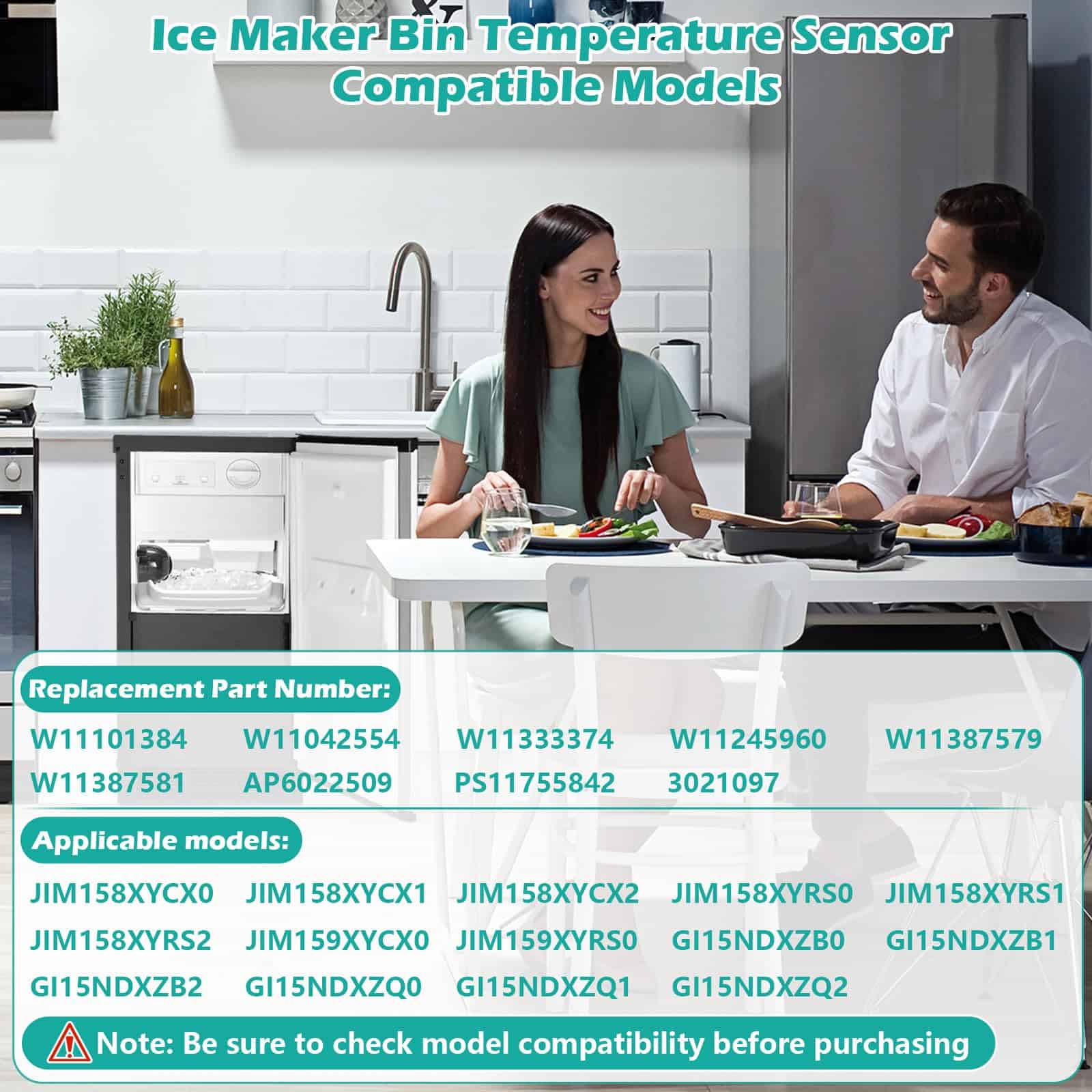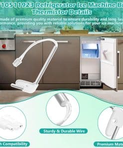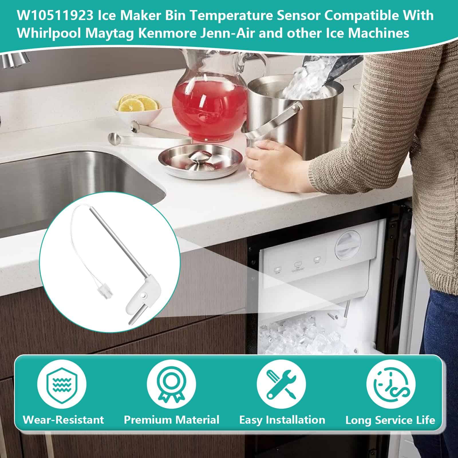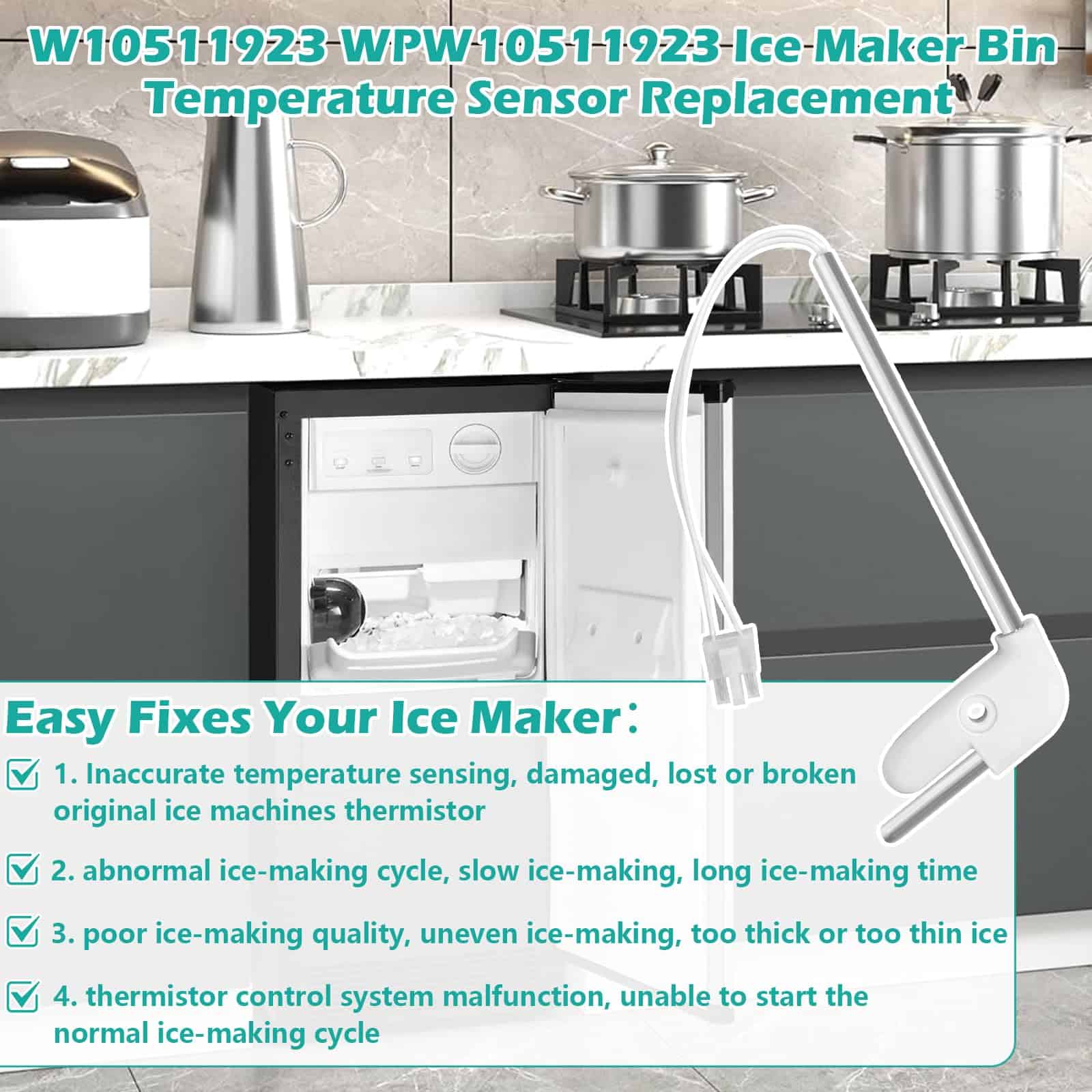 1. Sensor de Temperatura de Repuesto Para Máquinas de Hielo: El Sensor de Temperatura del Contenedor de Hielo W10511923 proporciona un control preciso de la temperatura para una producción uniforme de hielo. Reemplaza a WPW10511923 AP6022509 PS11755842 3021097 y es compatible con refrigeradores de máquinas de hielo Whirlpool, Maytag, Jenn-Air, Kenmore, Amana y KitchenAid ( Consejo: Antes de comprar, por favor verifique si su modelo es compatible.).