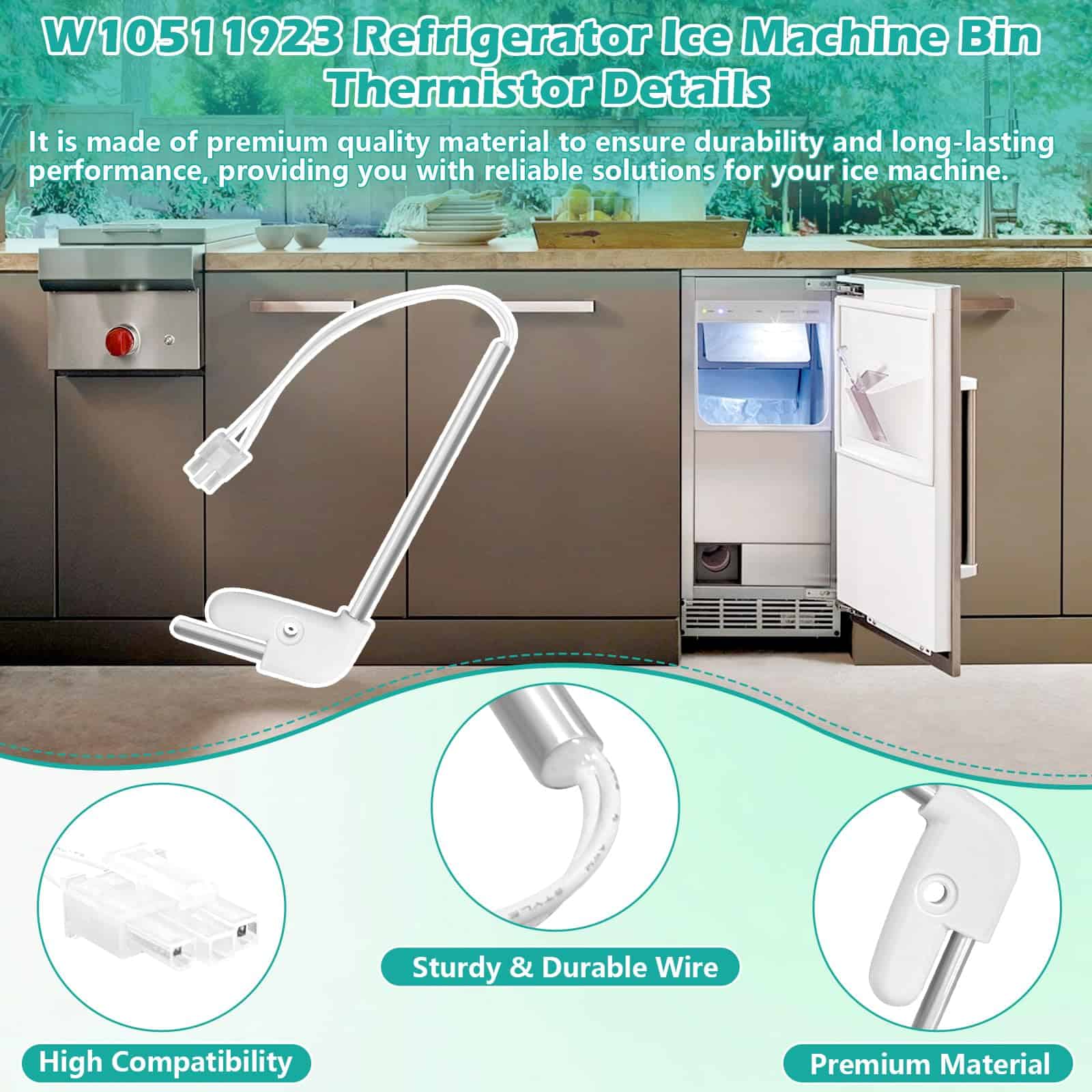 3. Termistor del Contenedor de Hielo W10511923 Compatible con Modelos KitchenAid: KUIC15NHZS0, KUIC15PHZS0, KUIC15POZP0, KUIC15POZP1, KUIC15POZP2, KUIS15NNZB0, KUIS15NNZW0, KUIC18NNZS0, KUIC18PNZS0, KUIS18NNZB0, KUIS18NNZW0, KUIS18PNZB0, KUIS18PNZB1, KUIS18PNZB2, KUIS18PNZW0, KUIS18PNZW1, KUIS18PNZW2, KUIO18NNZS0, KUIO18NNZS1, KUIO18NNZS2, KUIX305EBL0, KUIX305EBL1, KUIX305ESS0, KUIX305ESS1, KUIX305ESS2, KUIX305EWH0, KUIX305EWH1, KUIX335HPS01, KUID308ESS0, KUID308ESS1, KUID308ESS2, KUID308HPS01, KUIX505EBS0, KUIX505EBS1, KUIX505ESS0, KUIX505ESS1, KUIX505ESS2, KUID508ESS0, KUID508ESS1, KUID508ESS2, KUID508HPS01, KUIX535HBS01, KUIX535HPA01, KUIX535HPS01.