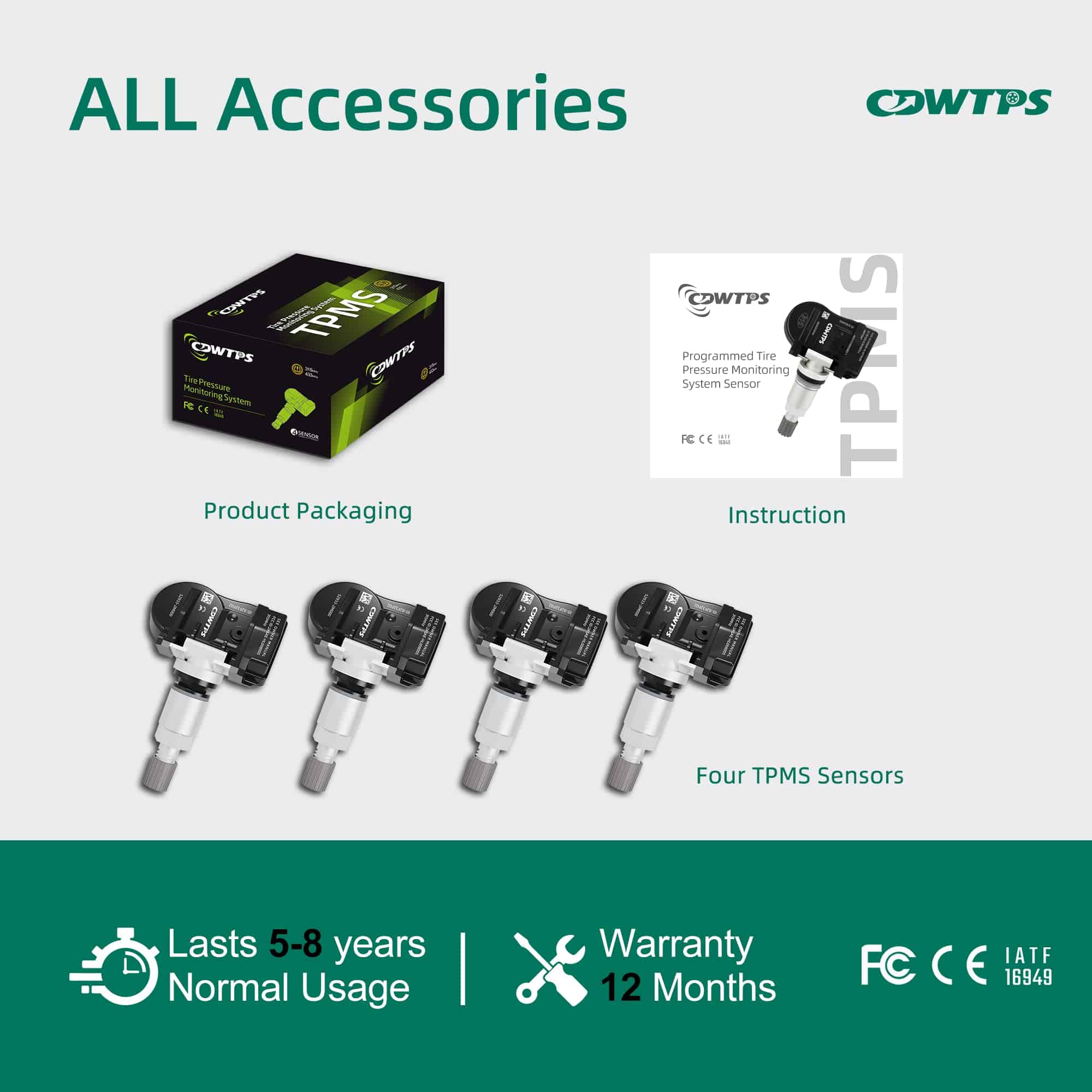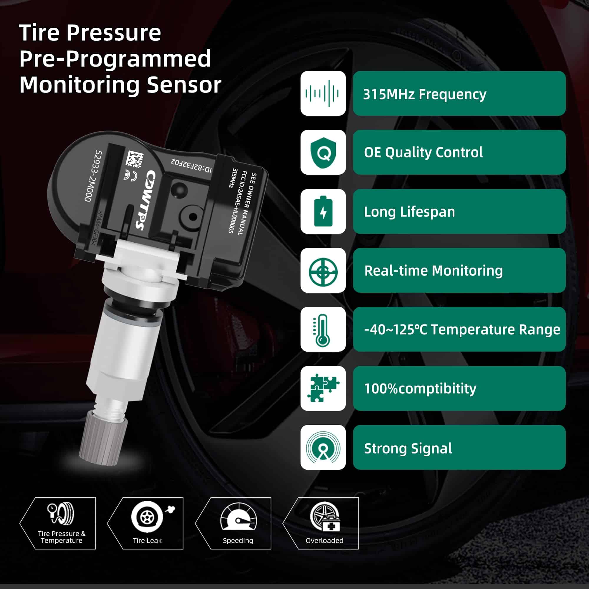 Paquete incluido: 4 sensores de presión de neumáticos (TPMS)