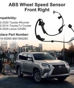 Sensor de velocidad de la rueda ABS delantero derecho compatible con Toyota 4Runner 2010-2020 Toyota FJ Cruiser Lexus GX460. ¡Elimina los códigos de falla ABS, reduce los riesgos de seguridad y garantiza la seguridad al conducir con este sensor de velocidad de rueda ABS de alta calidad! Este sensor es compatible con los modelos Toyota 4Runner 2010-2020, Toyota FJ Cruiser 2010-2014 y Lexus GX460 2010-2020. Reemplaza los números de parte 89516-60260 y 8951660260 para una instalación fácil y eficiente. Con una estructura robusta, resistencia a la corrosión y conductividad superior, este sensor de velocidad de rueda ABS garantiza un rendimiento confiable y una experiencia de conducción segura. No pierdas una excelente conducción con este sensor de velocidad de rueda ABS de alta calidad.