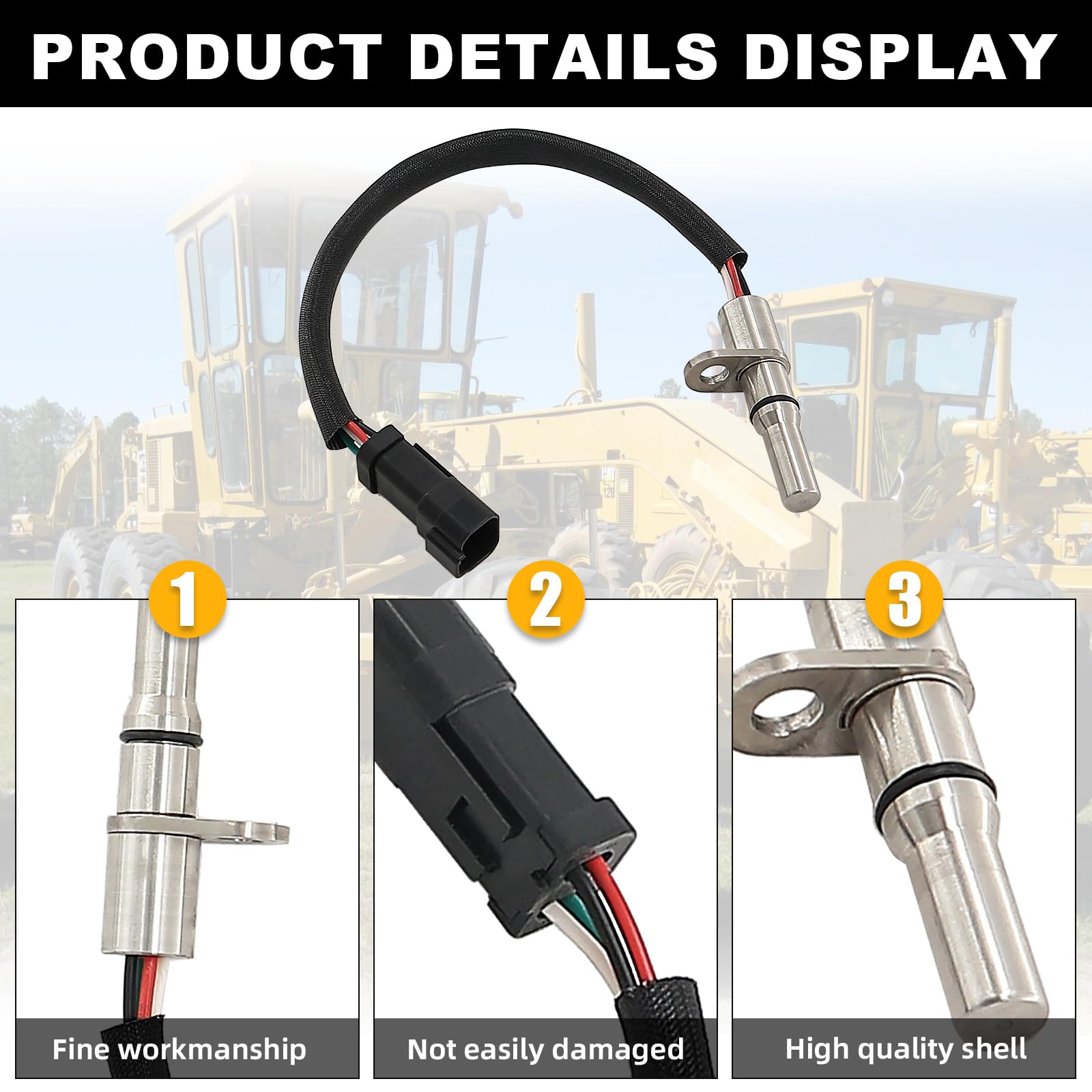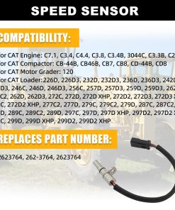 Sensor de Velocidad de Repuesto Compatible con Caterpillar CAT Skid Steer Loader 226D 236D 242D 246C 246D 256C 262C 262D Motor Grader 120 Compactor CB-44B CB46B CB7 CB8 CD8 262-3764 2623764 CA2623764. Este sensor de velocidad es compatible con varios modelos de motores, cargadores, compactadores y motoniveladoras CAT. Fabricado con materiales de alta calidad y siguiendo estrictos estándares de control de calidad, este sensor garantiza un funcionamiento suave del motor, una transmisión de potencia mejorada y una mayor eficiencia de combustible. Además, su instalación es sencilla y rápida, no destructiva y se adapta perfectamente a los componentes existentes del vehículo. Reemplaza con precisión los números de parte CA2623764, 262-3764 y 2623764.