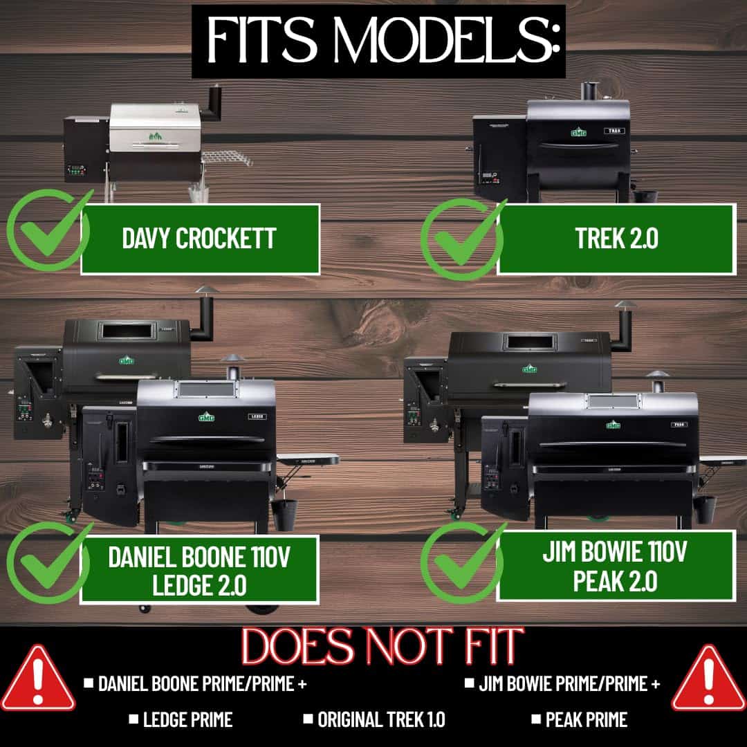 Funciona en las parrillas Green Mountain Grills Davy Crockett, Daniel Boone, Jim Bowie y todas las parrillas Prime 2.0. No funciona en parrillas de 12V anteriores a las parrillas Prime 2.0 (anterior al 2023)