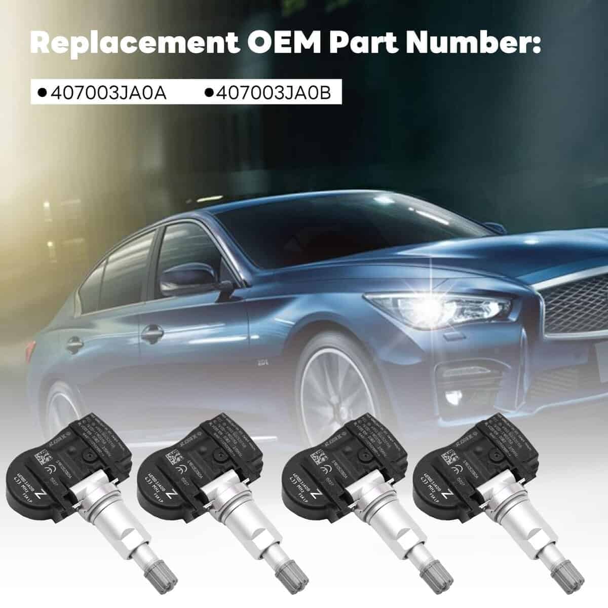 Actualice su vehículo con este juego de 4 sensores de presión de neumáticos TPMS, diseñados para Nissan Altima 2015-2018, Murano 2015-2018, Pathfinder 2016-2020 e Infiniti Q50 2016-2020. Estos sensores TPMS de 433MHz ayudan a garantizar el monitoreo en tiempo real de la presión de los neumáticos, mejorando la seguridad en la conducción y la eficiencia del combustible. Cada sensor viene preprogramado y requiere aprendizaje OBD para la activación. Construidos para igualar los estándares OEM, proporcionan una detección precisa de la presión y una transmisión de señal estable. Antes de comprar, verifique la compatibilidad con OE 407003JA0A, 407003JA0B. Fáciles de instalar y respaldados por una garantía de 12 meses, estos sensores de presión de neumáticos son ideales para propietarios de automóviles, mecánicos y talleres de reparación automotriz.
