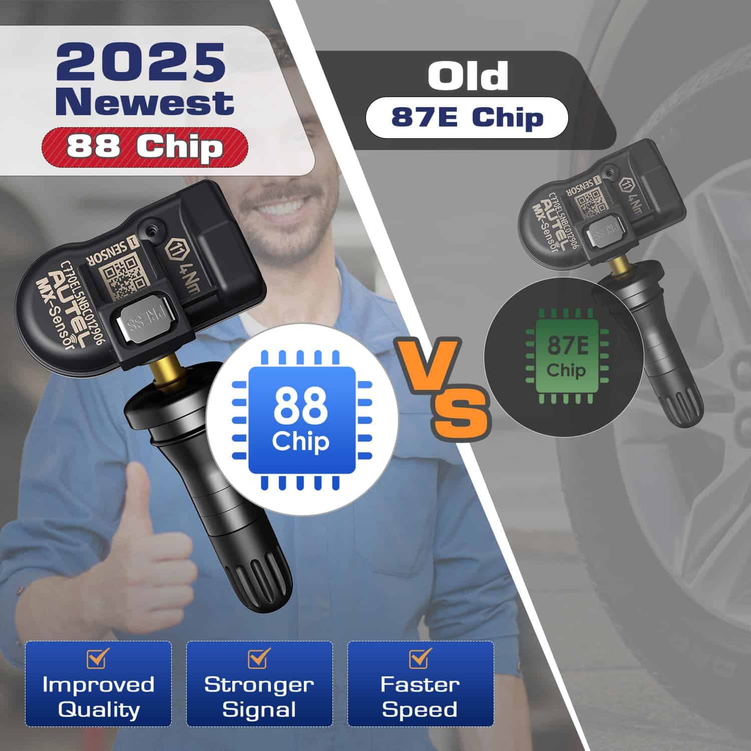 1. PROGRAMAR CON HERRAMIENTAS DE TPMS DE AUTEL Autel TPMS MX Sensor es 100% clonable, compatible con las herramientas de TPMS de Autel: TS408, TS408S, TS501, TS501 Pro, TS508, TS508WF, TS601, ITS600, TS608, TS900, y escáneres de diagnóstico de Autel: MK808S-TS, MX808S-TS, MK900TS, MP900TS, MS906TS, MS906 Pro-TS. Autel MX-Sensor está respaldado por una garantía de calidad de 2 años. 2. INNOVACIÓN DE SENSOR TPMS 4 EN 1 DE AUTEL Autel MaxiTPMS MX Sensor utiliza el nuevo chip de generación 88 para proporcionar sensores de llantas de mejor calidad. 1 MX-Sensor con frecuencias duales (315MHz + 433MHz), vástagos de válvula de goma/metal intercambiables, cubre el 99% de las demandas de reemplazo de sensores de vehículos, señal super fuerte en programación inalámbrica, 100% clonable, fácil instalación de presión. Puedes terminar el reemplazo de sensores defectuosos fácilmente en casa con la herramienta de programación de TPMS de Autel. 3. SOLUCIÓN DE SENSOR TPMS UNIVERSAL El Sensor de Llantas Autel es una necesidad fácil de usar y rentable tanto para las tiendas de reparación de TPMS como para los mecánicos caseros. El Sensor de Llantas Autel 315MHz y 433MHz de doble frecuencia 1 es compatible con el 98% de los vehículos en la carretera, 1 sensor pequeño se adapta bien a todos los automóviles. A nivel de tienda, los técnicos solo necesitan 1 SKU para atender casi todos los vehículos equipados con TPMS, lo que significa un menor costo comercial pero una mayor eficiencia de instalación. 4. VERSIÓN DEL CHIP MÁS NUEVA DE 2025 Autel MaxiTPMS MX Sensor cuenta con el nuevo chip 88, mejorado del antiguo chip de sensor 87E, lo que proporcionará la señal más fuerte en la programación inalámbrica de una manera más rápida, y la comunicación es más estable y segura. Hasta 16 sensores se pueden programar en una sesión con las últimas herramientas de TPMS de AUTEL. El MX-Sensor de AUTEL es 100% clonable. No se requiere reajuste cuando el MX-Sensor se clona con el ID de sensor original y se coloca en la misma posición. 5. CALIDAD DE SENSORES OE Autel TPMS MX-Sensor proporciona una vida útil y fiabilidad superiores para igualar el rendimiento del sensor OE. La batería Autel MX-Sensor soporta 4-6 años o 24,000 millas de trabajo, opera bien desde -40 °C hasta 125 °C de temperatura, leyendo la presión desde 0 hasta 800 kPa con una precisión de 10 kPa. El cuerpo del sensor TPMS 1-Sensor pesa solo 11g, lo que lo hace significativamente más ligero que la mayoría de los sensores en el mercado. El MX-Sensor de Autel también está probado y certificado para cumplir con el estándar de la industria SAE J1205 / J1206.