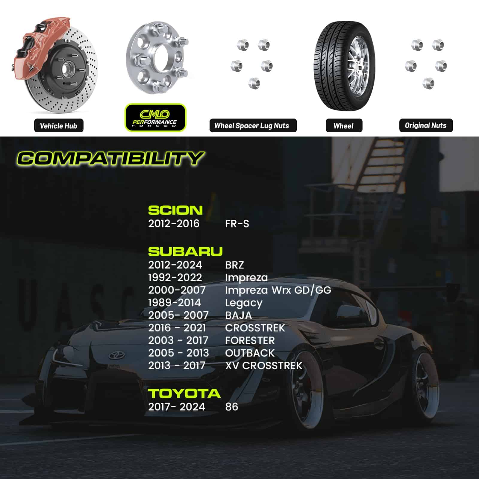 Cantidad: 4 piezas. Ancho: 20 mm por separador. Diseño centrado en el cubo con labio e instalación mediante pernos para 5×100, 56.1mm (Centro del agujero). NOTA: Los pernos de fábrica pueden necesitar ser acortados. Compatible con Subaru BRZ Impreza Forester XV Crosstrek Outback Baja Legacy Scion FR-S Toyota 86 GR86. Nuestros separadores de rueda están diseñados para corregir el desfase, mejorando el rendimiento en la manipulación y realzando la apariencia general. Los separadores de rueda Customadeonly están fabricados mediante el proceso CNC automatizado en nuestro centro de mecanizado de 4 ejes. Esto asegura una calidad y precisión consistentes a cada producto que se produce, eliminando así el problema de equilibrio que otras marcas pueden tener. Fabricados con aluminio de alta calidad 6061 T-6, conocido por su alta resistencia y durabilidad. Los separadores se ensamblan con pernos de acero al carbono de clase 10.9 (grado 8 SAE) con tratamiento térmico. Además, los separadores de rueda Customadeonly están respaldados por nuestra garantía de reemplazo de 2 años contra cualquier defecto funcional. Si tiene alguna pregunta sobre nuestro producto, no dude en contactarnos, estamos aquí para ayudar. Compatible con Subaru BRZ 2013-2022, Impreza 1993-2022, WRX 2006-2013, Forester 1998-2018, XV Crosstrek 2013-2015, Outback 2000-2014, Legacy 1990-2016, Baja 2003-2006. Compatible con Toyota GR86, 86 2017-2020, Compatible con Scion FR-S 2013-2016.