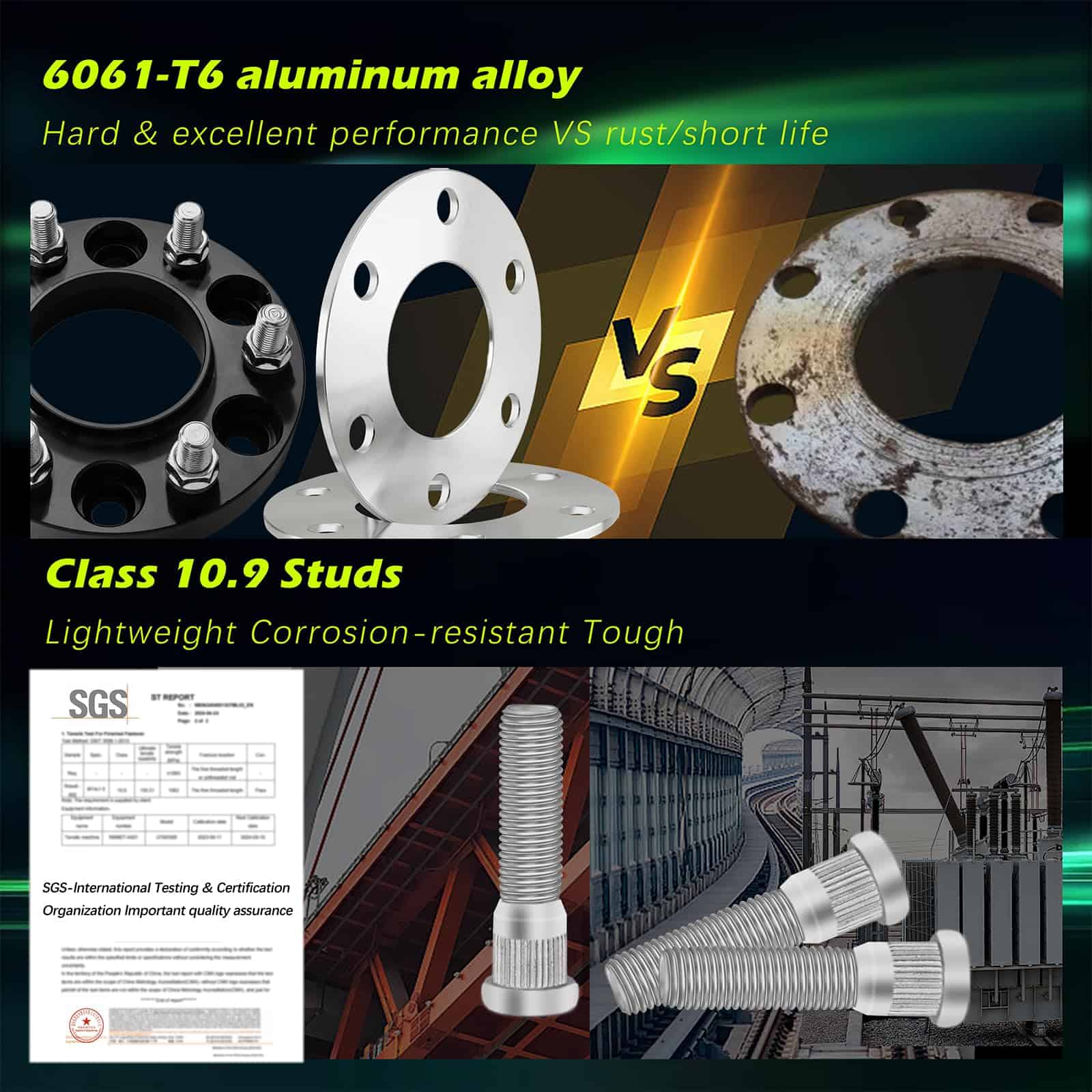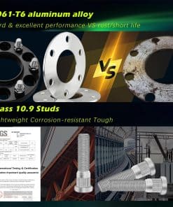 Los separadores de rueda / adaptadores Customadeonly se realizan a través de mecanizado CNC automatizado, es un proceso de fabricación computarizado en el que el software y el código preprogramados controlan el movimiento del equipo de producción. Este proceso elimina el error humano y garantiza la consistencia de calidad, precisión (baja tolerancia) y equilibrio de cada producto producido. Están fabricados con aluminio de alta calidad 6061 T-6, este material es conocido por su alta resistencia a la tracción y durabilidad. Los separadores están ensamblados con espárragos de acero al carbono de grado 10.9 (grado 8 SAE) o superior con tratamiento térmico. Los separadores de rueda Customadeonly también cuentan con una garantía de producto de 2 años contra cualquier defecto funcional.