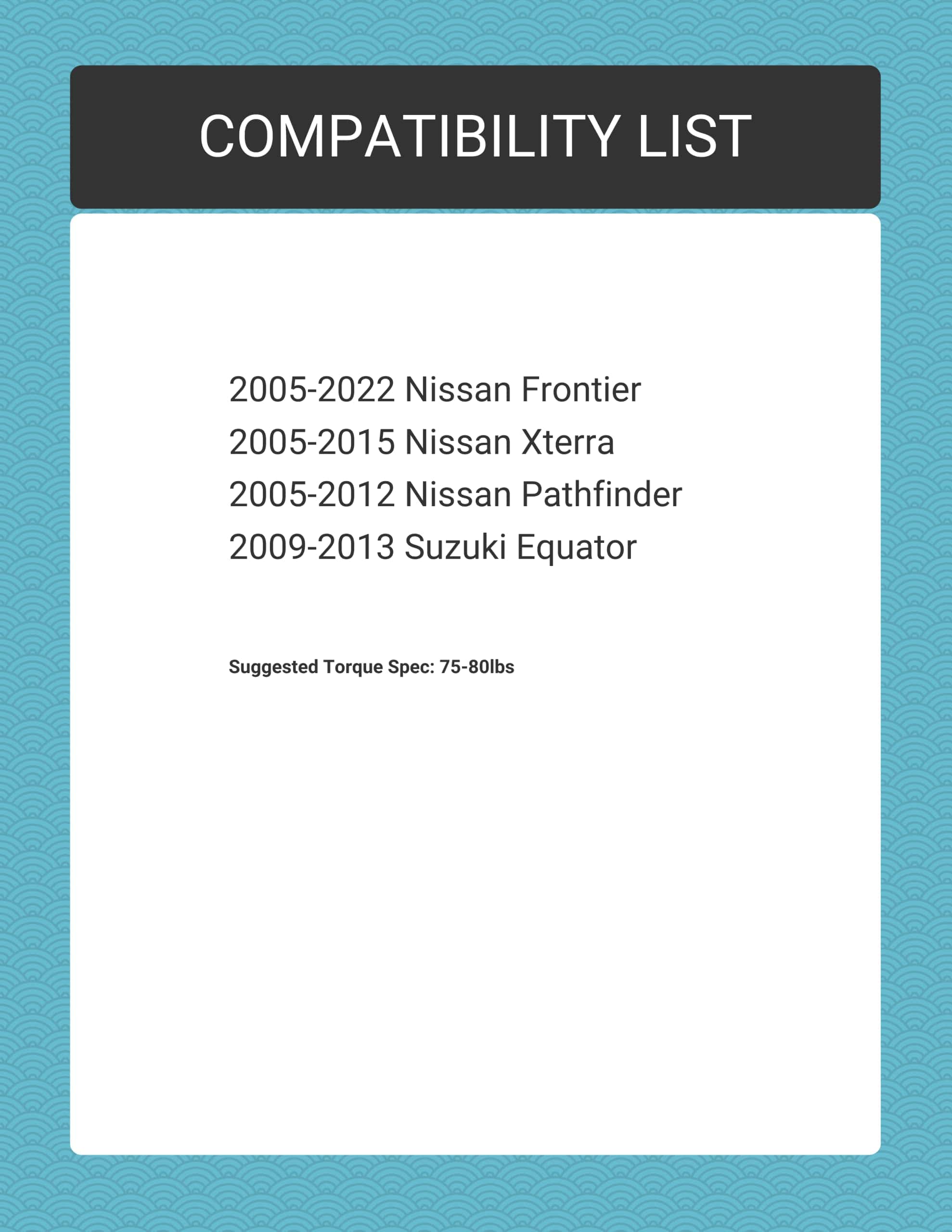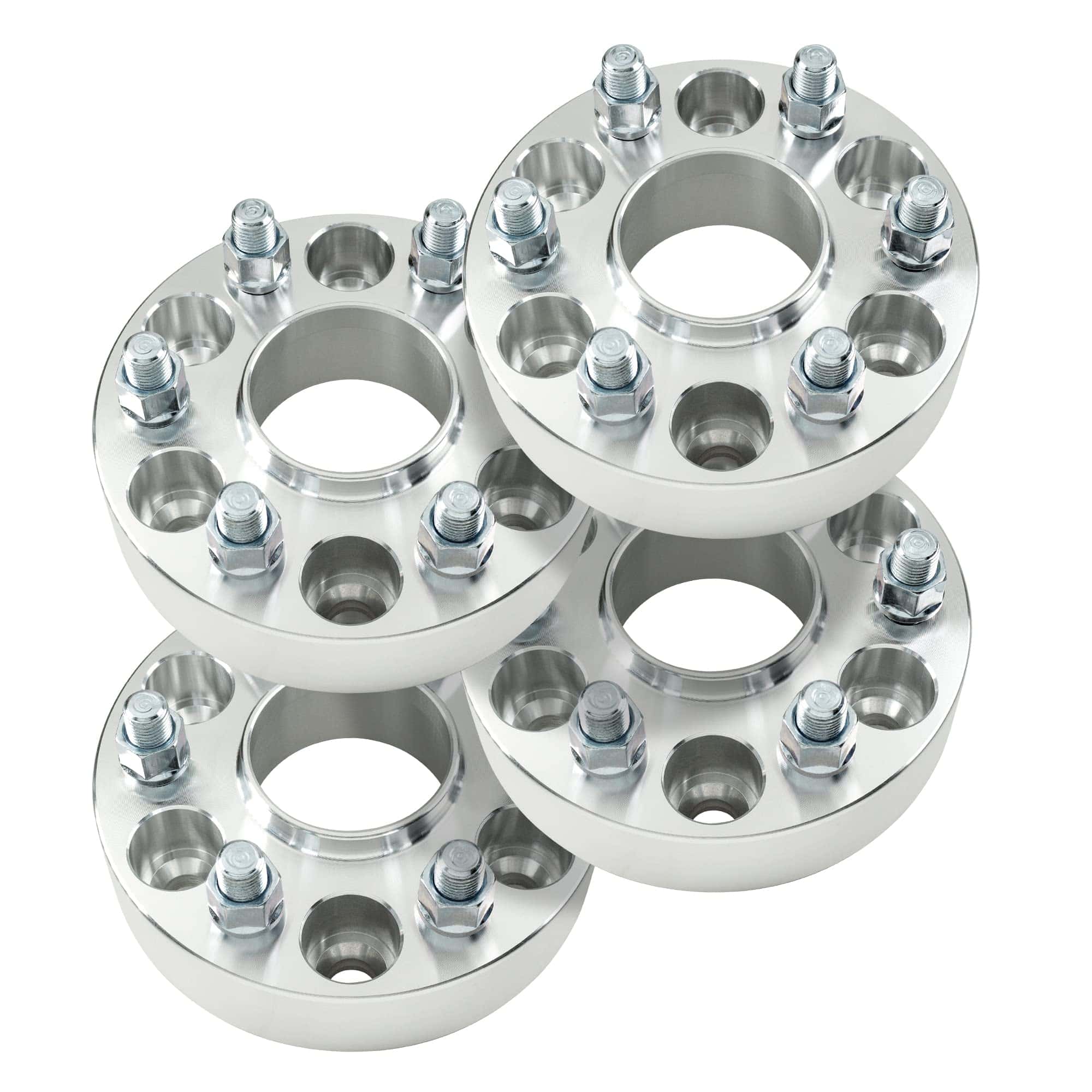 Ancho del separador: 38mm (1.5 pulgadas) cada lado. Cantidad: 4 piezas. Patrón de pernos: 6X114.3 a 6X114.3 (equivalente a 6×4.5 pulgadas). Diámetro central: 66.1mm. Paso de rosca: 12X1.25. Este juego de separadores incluye tuercas de rueda de extremo abierto para asegurar los separadores en los cubos de fábrica. Tus espárragos de rueda de fábrica pueden extenderse más allá de la superficie de los separadores de rueda. En este caso, deberás: 1) Acortar los espárragos de fábrica 2) Las ruedas deben tener las ranuras abiertas entre los agujeros de montaje. 3) Comprar un juego de espárragos más cortos y reemplazarlos con los espárragos de fábrica. El uso incorrecto de combinaciones de adaptadores de rueda/neumático puede reducir la estabilidad del vehículo y provocar accidentes y/o lesiones. El uso en cualquier vehículo de ruedas de tamaños o tipos no recomendados o especificados por el fabricante del vehículo es bajo el riesgo único del usuario, y anula cualquier garantía expresa o implícita; (incluyendo la comerciabilidad y idoneidad para un propósito particular). El uso de adaptadores/separadores de rueda queda a discreción del usuario. La responsabilidad recae únicamente en el usuario. Excepto por la garantía limitada establecida aquí, nuestra empresa no otorga ninguna otra garantía, expresa o implícita, con respecto a los productos y específicamente renuncia a las garantías implícitas de comerciabilidad y idoneidad para un propósito particular. En ningún caso nuestra empresa será responsable de ningún daño directo, indirecto, punitivo, incidentales, especial, consecuente, a la propiedad o la vida, que surjan de o estén relacionados con el uso o mal uso de nuestros productos. Nuestra responsabilidad, si la hubiera, ya sea en contrato o en agravio o de otra manera, se limita a la cantidad de ventas que realmente recibimos de ti.