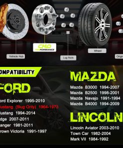Ancho del espaciador: 20mm cada lado. Cantidad: 4 piezas. Patrón de pernos: 5X114.3 a 5X114.3 (equivalente a 5×4.5 pulgadas). Diámetro del centro: 70.3mm. Rosca: 1/2 pulgada. Tipo de espaciador: Hub Centric con labio de centro. Este juego de espaciadores incluye tuercas de perno de extremo abierto para asegurar los espaciadores en tus bujes de fábrica. Es posible que los pernos de rueda de fábrica se extiendan más allá de la superficie de los espaciadores. En este caso, deberás: 1) Acortar los pernos de fábrica. 2) Las ruedas deben tener las ranuras abiertas entre los agujeros de montaje. 3) Comprar un juego de pernos más cortos y reemplazarlos con los pernos de fábrica. El uso incorrecto de combinaciones de adaptadores de neumáticos/ruedas puede reducir la estabilidad del vehículo y causar accidentes y/o lesiones. El uso en cualquier vehículo de ruedas de tamaños o tipos no recomendados o especificados por el fabricante del vehículo es bajo el riesgo exclusivo del usuario, y anula todas y cada una de las garantías expresas o implícitas; (incluyendo comerciabilidad y aptitud para un propósito particular). El uso de adaptadores/espaciadores de ruedas es a discreción del usuario. La responsabilidad recae únicamente en el usuario. Excepto por la garantía limitada establecida aquí, nuestra empresa no ofrece ninguna otra garantía, expresa o implícita, con respecto a los productos y específicamente renuncia a las garantías implícitas de comerciabilidad y aptitud para un propósito particular. En ningún caso nuestra empresa será responsable de daños directos, indirectos, punitivos, incidentales, especiales, consecuentes, a la propiedad o la vida, que surjan de o estén relacionados con el uso o mal uso de nuestros productos. Nuestra responsabilidad, si la hubiere, ya sea en contrato o en agravio o de otro modo, se limita a la cantidad de ventas que realmente recibimos de usted.
