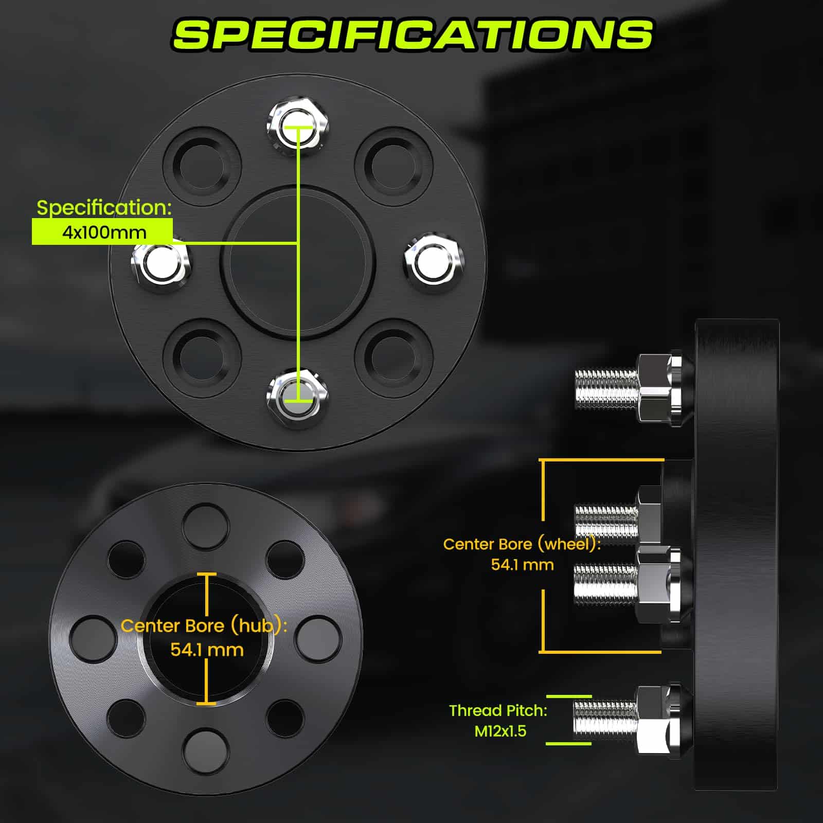 Separadores de rueda negros de 1.5″ (38mm) 4×100 Hub
