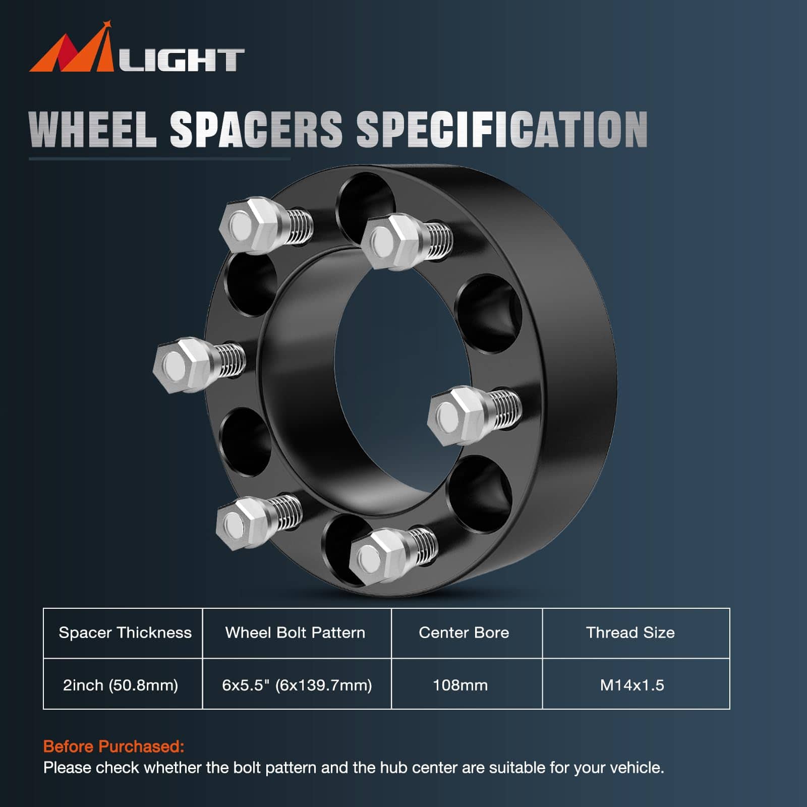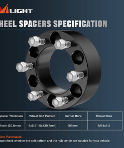 Los separadores de rueda Nilight para Chevy Silverado GMC Sierra 1500 Yukon XL Avalanche son la solución perfecta para problemas de claridad de pinza de freno. Estos separadores tienen un patrón de pernos de 6×5.5 pulgadas (6×139.7 mm) y un grosor de 2 pulgadas (50.8 mm), lo que les permite proporcionar una mayor estabilidad en las curvas y una apariencia más agresiva. Están fabricados en aleación de aluminio 6061-T6, lo que los hace más resistentes a la corrosión y garantiza una mayor durabilidad. Además, ofrecemos una garantía de repuesto gratuito por 24 meses. Compre nuestros separadores de rueda hoy y mejore su experiencia de manejo.