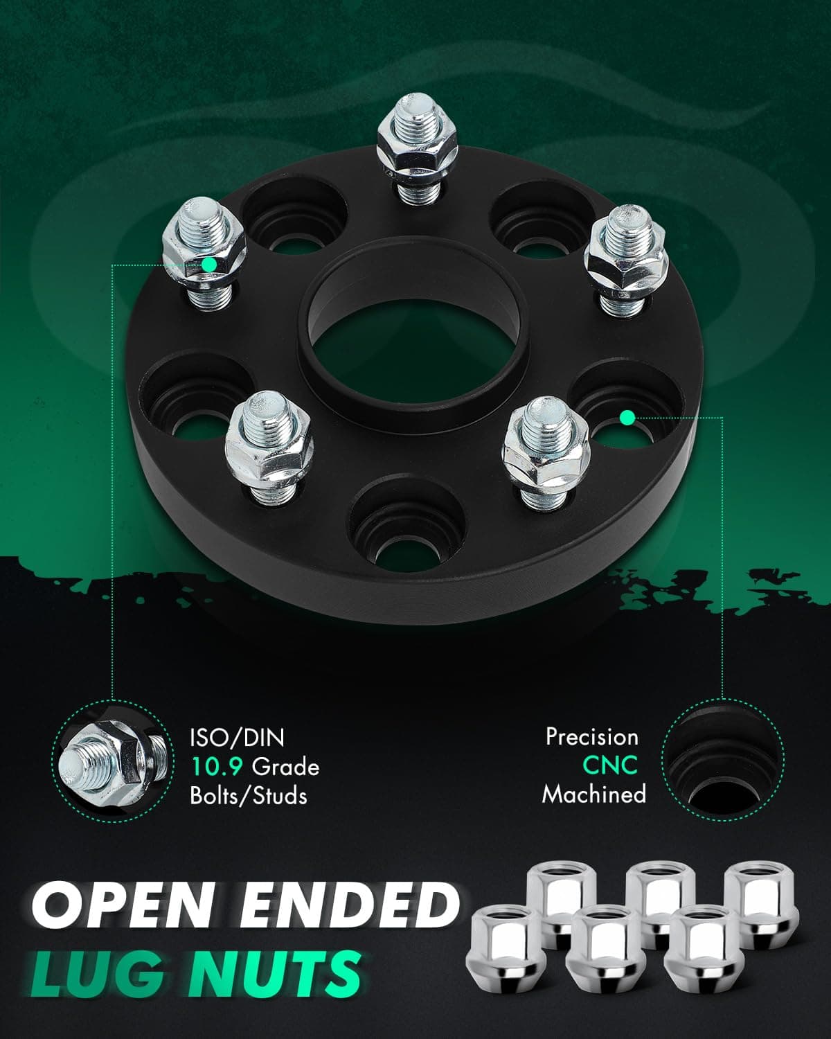 3. Separadores de rueda y adaptadores de alta calidad de aluminio forjado en caliente de grado aeronáutico con espárragos ISO/DIN 109 forjados y tratados térmicamente para ensanchar la pista y reducir la brecha entre la llanta y el guardabarros para aumentar la estabilidad en las curvas para una postura agresiva.
