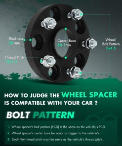 2. Juego de separadores de rueda de 20 mm que incluye 2 piezas de 5×4.5 separadores de rueda. Grosor: 20mm, Patrón de pernos: 5×4.5/5×114.3, Diámetro central: 60.1mm, Paso de rosca: 12×1.5.