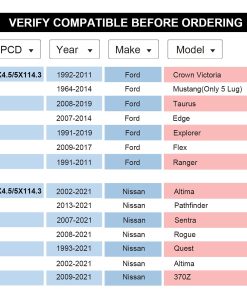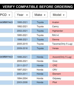 Verifica que el número de birlos, el diámetro del círculo de birlos, el agujero central y el tamaño del perno coincidan con tu vehículo antes de hacer el pedido.