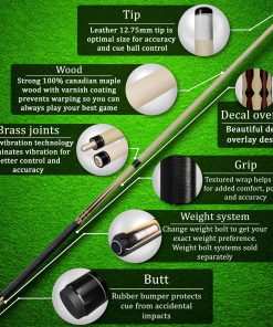 Palo de billar de 100% madera de arce canadiense. Palo de billar profesional con estuche rígido y protectores de junta