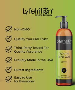 Lyfetrition Youth Renewal Serum (Skin and Face Formula) | 12 fl oz Large Bottle | With Aloe and Retinol