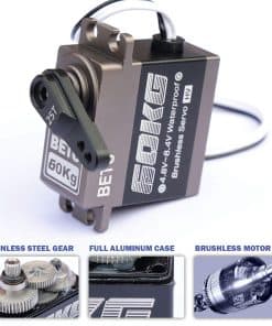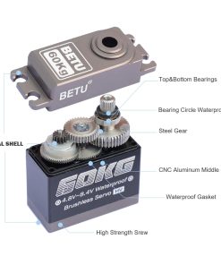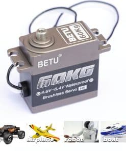 El Servo Digital Brushless de 60kg de Alto Torque es ideal para autos, aviones y robots. Excelente servo digital para personas interesadas en el desarrollo de software para piezas de robots, como brazos mecánicos, drones cuadricópteros y otros equipos de control remoto.