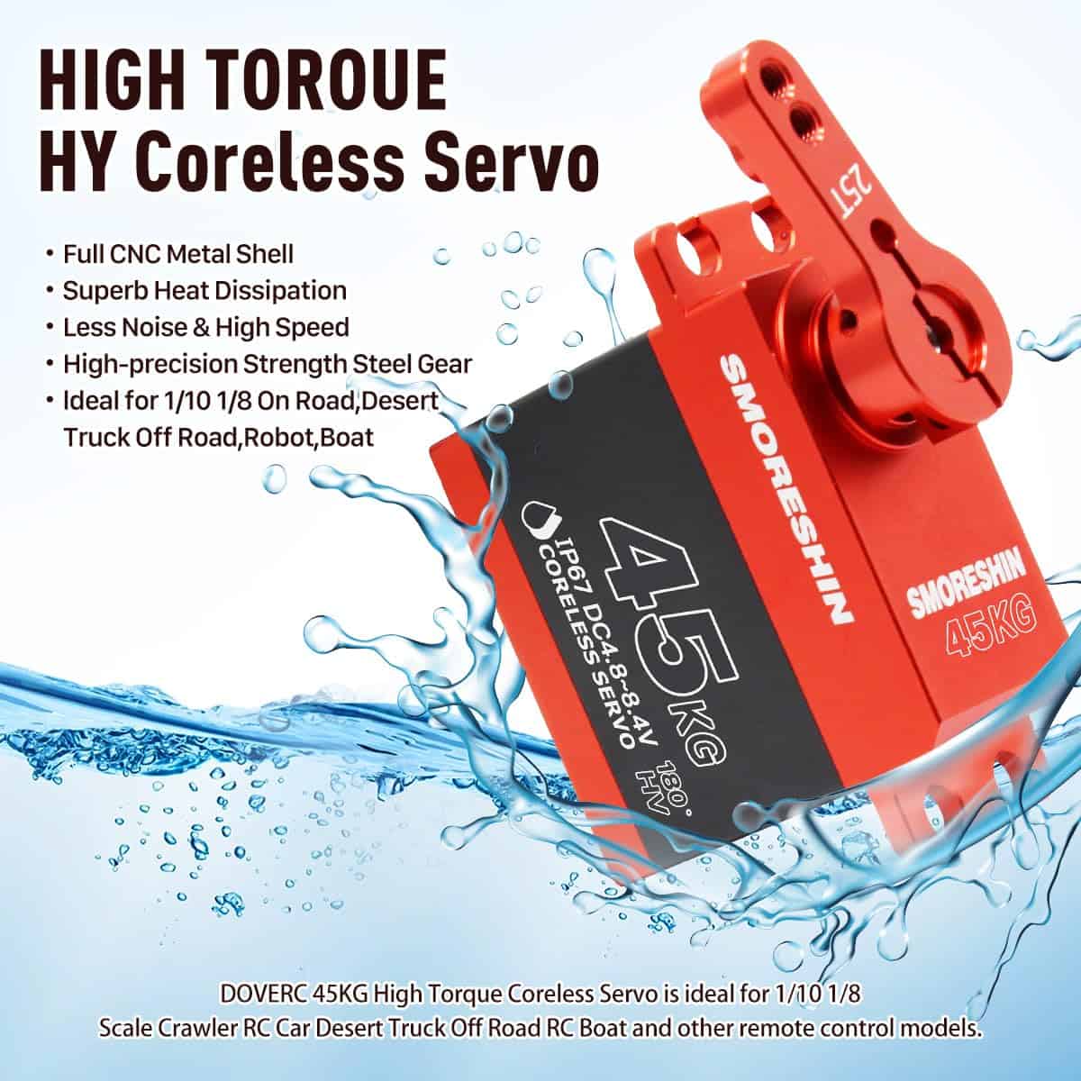 Servo Coreless de 45Kg, Carcasa de Aluminio Completa y