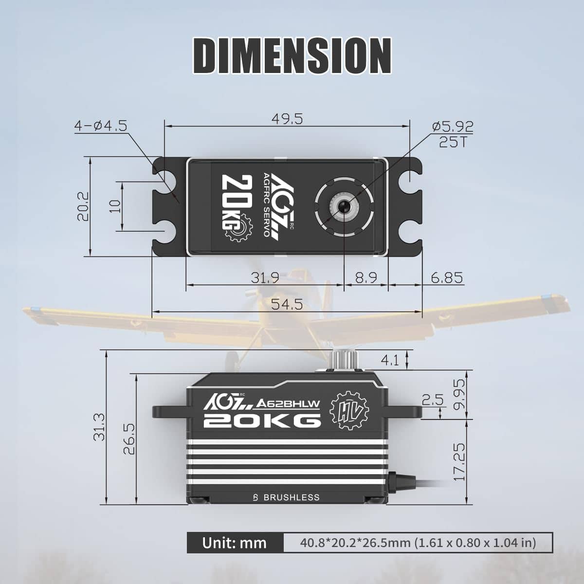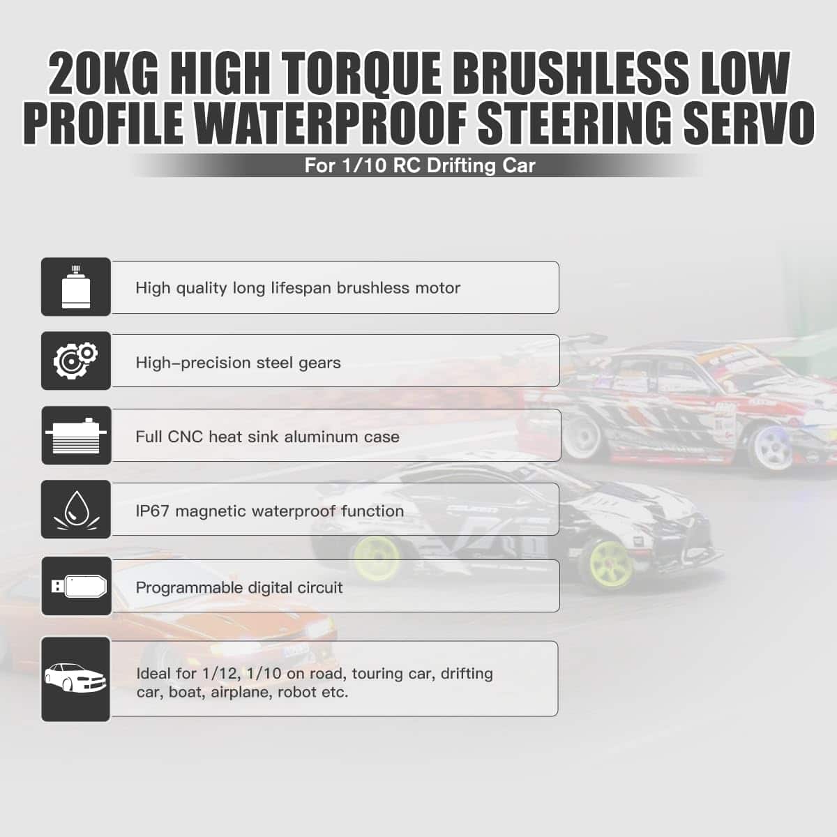 Servo de Dirección de Bajo Perfil de 20KG AGFRC de Alto Par