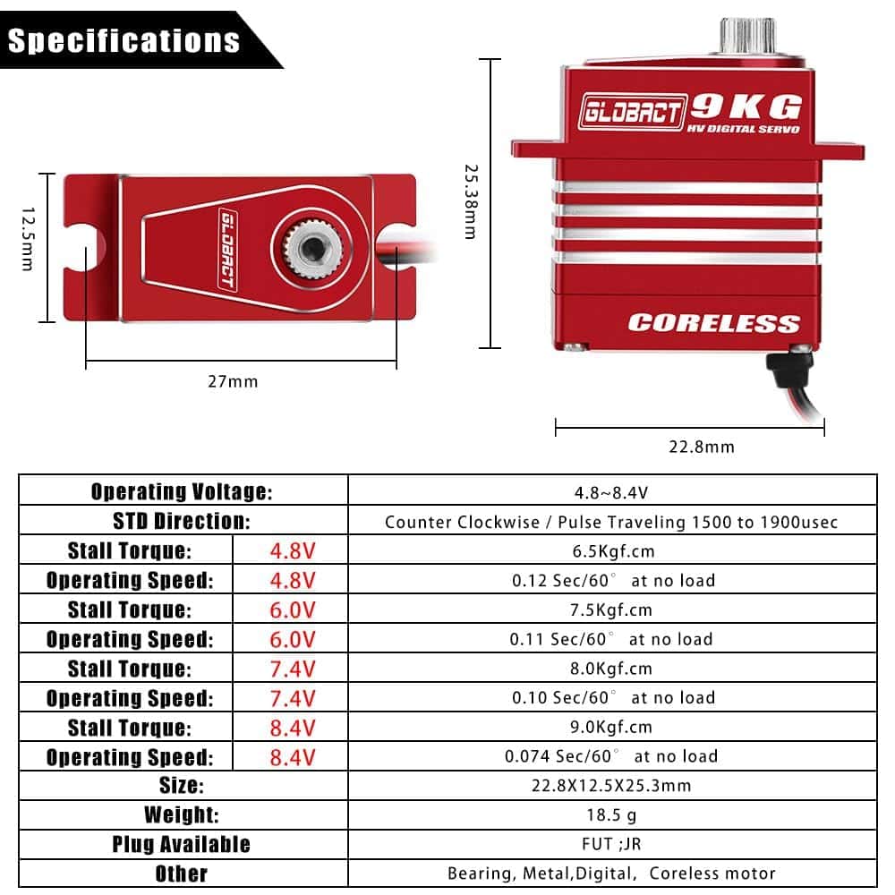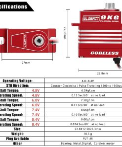 Servo de Metal GLOBACT 9kg para TRX4M con Brazo de Servo