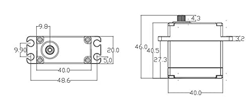 Tamaño: 40x20x40.50mm, Peso: 75g (sin cuerno de servo), Engranaje: Metal, Torque/Velocidad: 18kg-cm/0.06sec/60 6V, 25kg-cm/0.04sec/60 8.4V, Tipo de motor: Motor brushless, Tipo de señal: Control digital, Material de la caja: Caja de aluminio CNC AL6082, Longitud del cable del conector: 300MM con conector JR