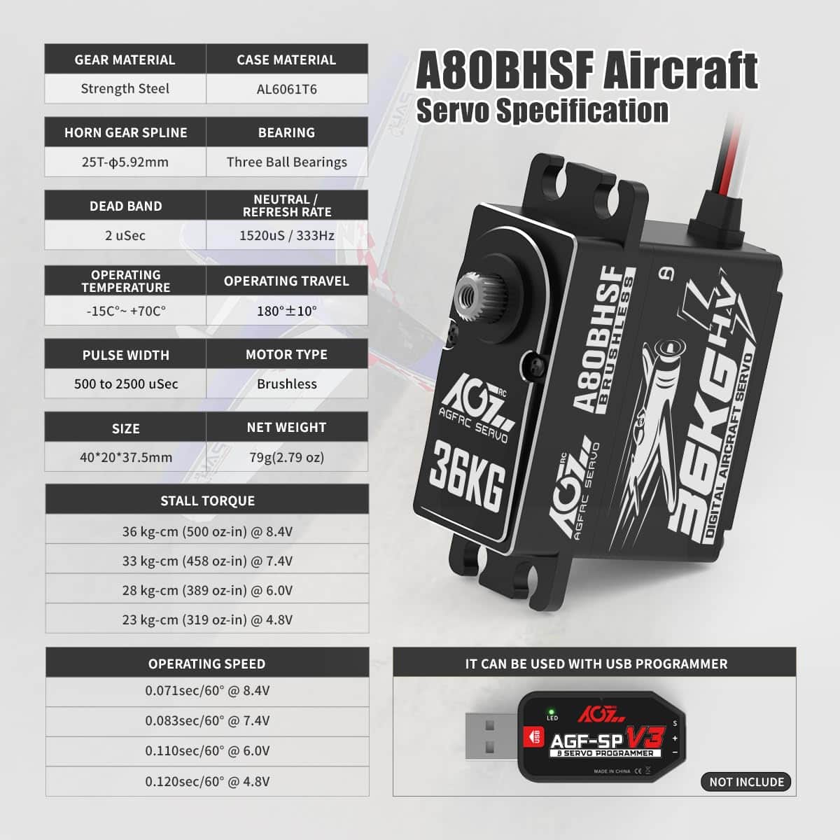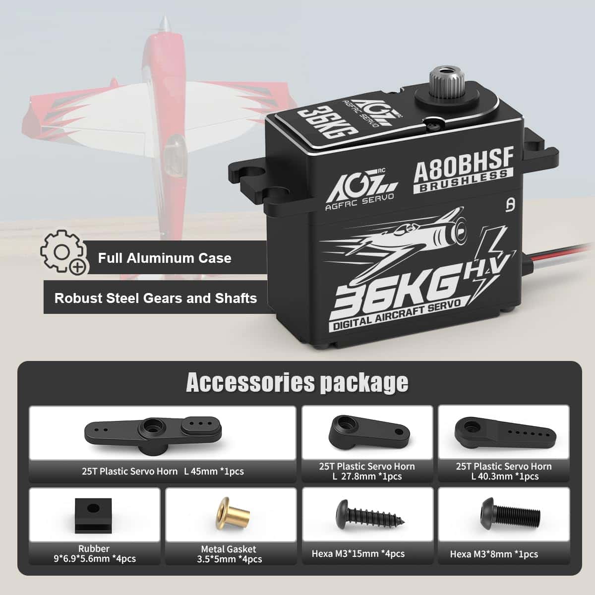 Paquete Incluido: 1 x Servo de Avión AGFRC A80BHSF 1 x Kit de Accesorios