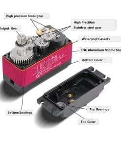 Carcasa de aluminio CNC para una mejor disipación del calor, dos rodamientos de bolas en el eje de salida para reducir la fricción. Ligero, alto torque de alta velocidad, resistente al agua, sensible, receptivo, poco ruido y más. Sus engranajes de acero inoxidable ofrecen mayor velocidad y precisión y una vida útil más larga. También tiene mucha potencia, súper fuerte y estable, te ayudará a controlar mejor tu modelo.