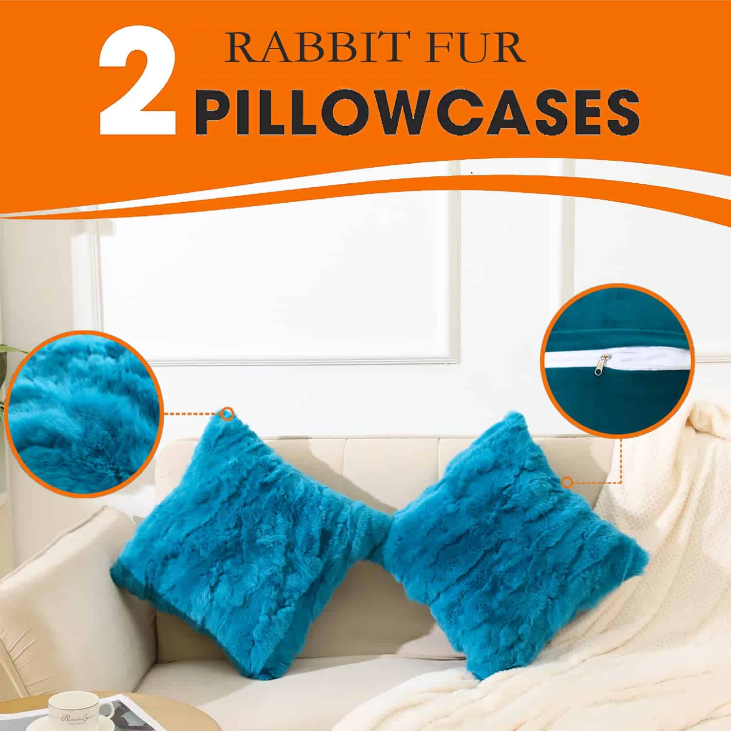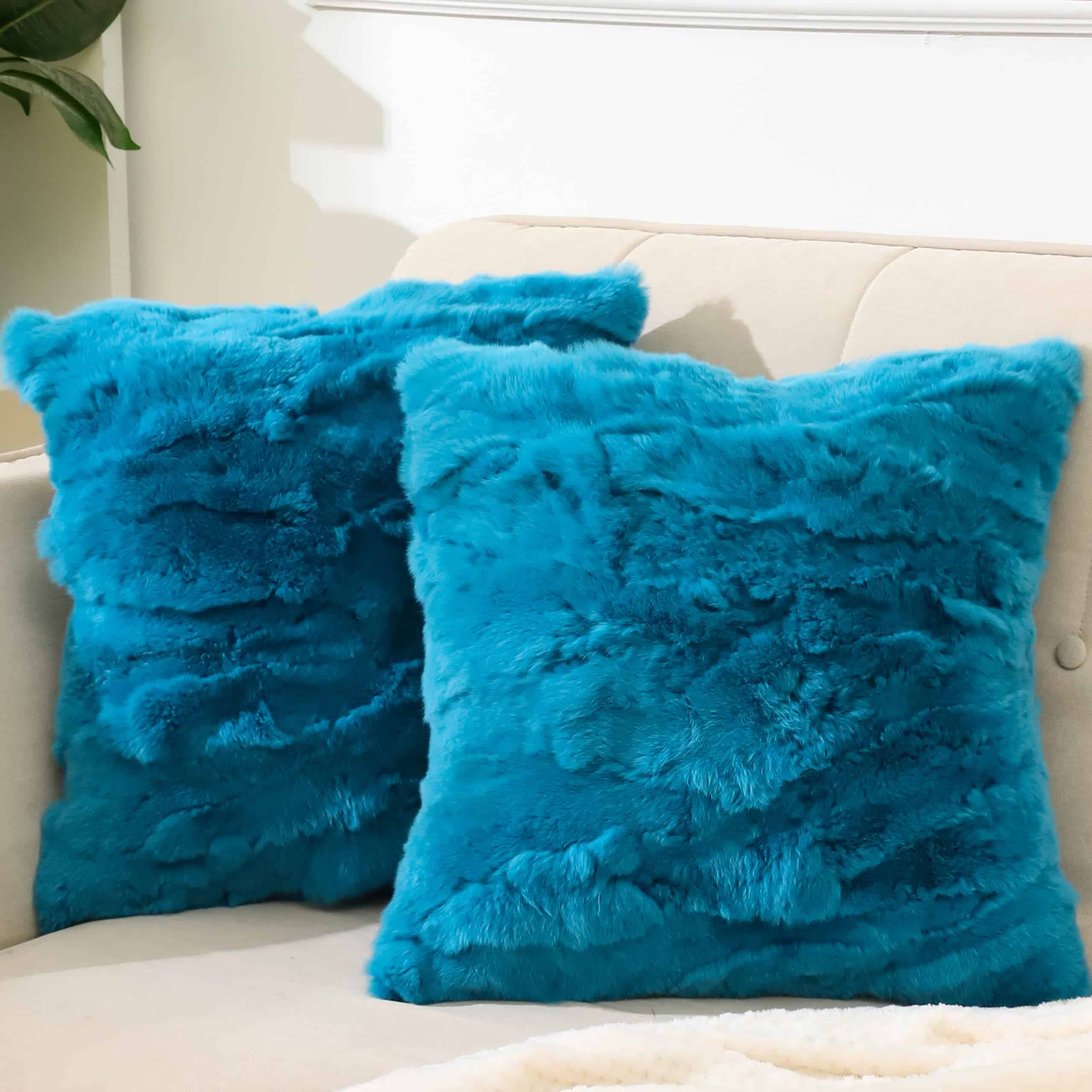 1. Hecho de 100% piel de conejo natural con forro de terciopelo en la parte trasera para una sensación suave y esponjosa de lujo. 2. Fundas de almohada cuadradas de 18×18 pulgadas que se ajustan a los insertos de almohada cuadrados estándar de 18 pulgadas (los insertos no están incluidos). 3. Cierre de cremallera oculta en color coordinado en el lado trasero. 4. El pelaje azul turquesa agrega un toque de color vibrante a cualquier habitación. 5. Perfecto para sala de estar, dormitorio, oficina y más. 6. Limpieza en seco únicamente para mantener la piel suave, esponjosa y hermosa.