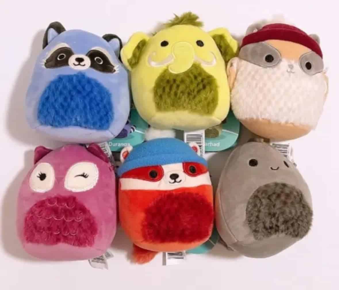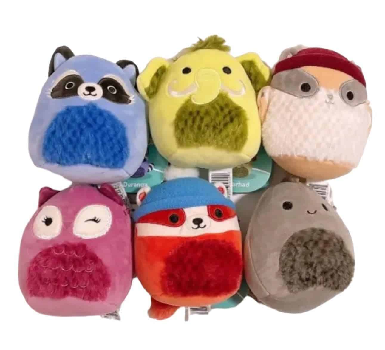 Set 6 Squishmallows Cozy Squad Raccoon Mammoth Dino 5″ Mini Muñeco de Peluche Oficial de Kelly Toy