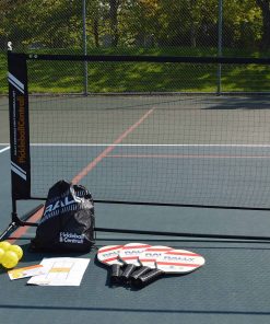 1. Todo lo que necesitas para empezar a jugar pickleball: Incluye 1 Sistema de Red Portátil con bolsa de transporte + 4 Palas Rally Meister + 4 Pelotas de Pickleball + Tiza para marcar líneas + Guía de Reglas y Estrategia + Bolsa de transporte con cordón de Rally.