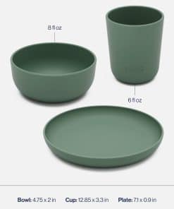 Lalo, la marca premium de cuidado para bebés ahora disponible en nuestra tienda! Diseñado por padres, creamos esenciales para bebés y niños pequeños para los padres presentes. Nuestros productos son seguros, hermosos y duraderos. Nuestro juego de comidas Lalo es seguro para tu familia! El tazón, plato y vaso de 4 oz están hechos de silicona libre de BPA. Los cubiertos tienen componentes de acero inoxidable, hechos para manos pequeñas. Los platos y tazones son apilables, lo que ahorra espacio en tu armario y facilita el almacenamiento! Cada pieza está hecha de materiales ligeros y duraderos que garantizan un uso duradero. No apto para microondas.
