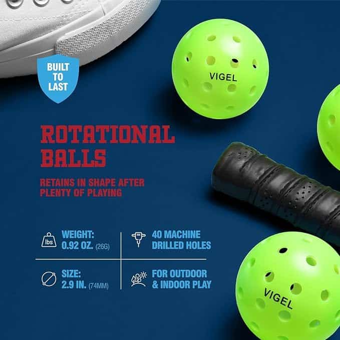 3. COMPETENCIA CONFIABLE con Bolas de Pickleball para Juego al Aire Libre: Benefíciate del diseño impresionante de estas bolas de pickleball para exteriores, que cuentan con 40 hoyos rotacionales, una construcción liviana de 26 gramos (0.92 oz), y un tamaño de 74mm (2.9 in) para un rendimiento y rebote consistentes.